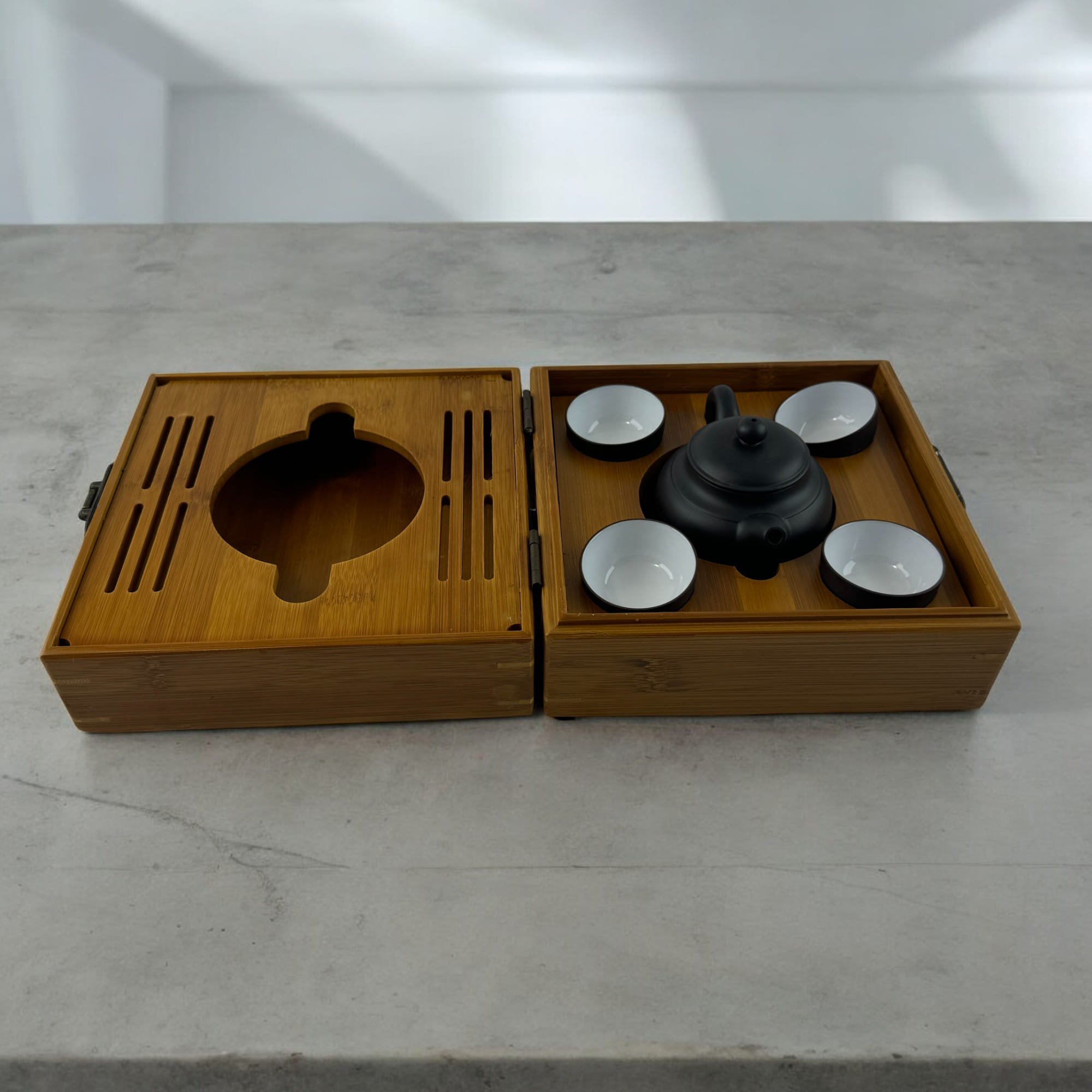 Этот набор идеально подходит как для личного пользования, так и для чаепития с гостями. Бамбуковый футляр обеспечивает безопасное хранение и придаёт вашему пространству естественную изысканность.