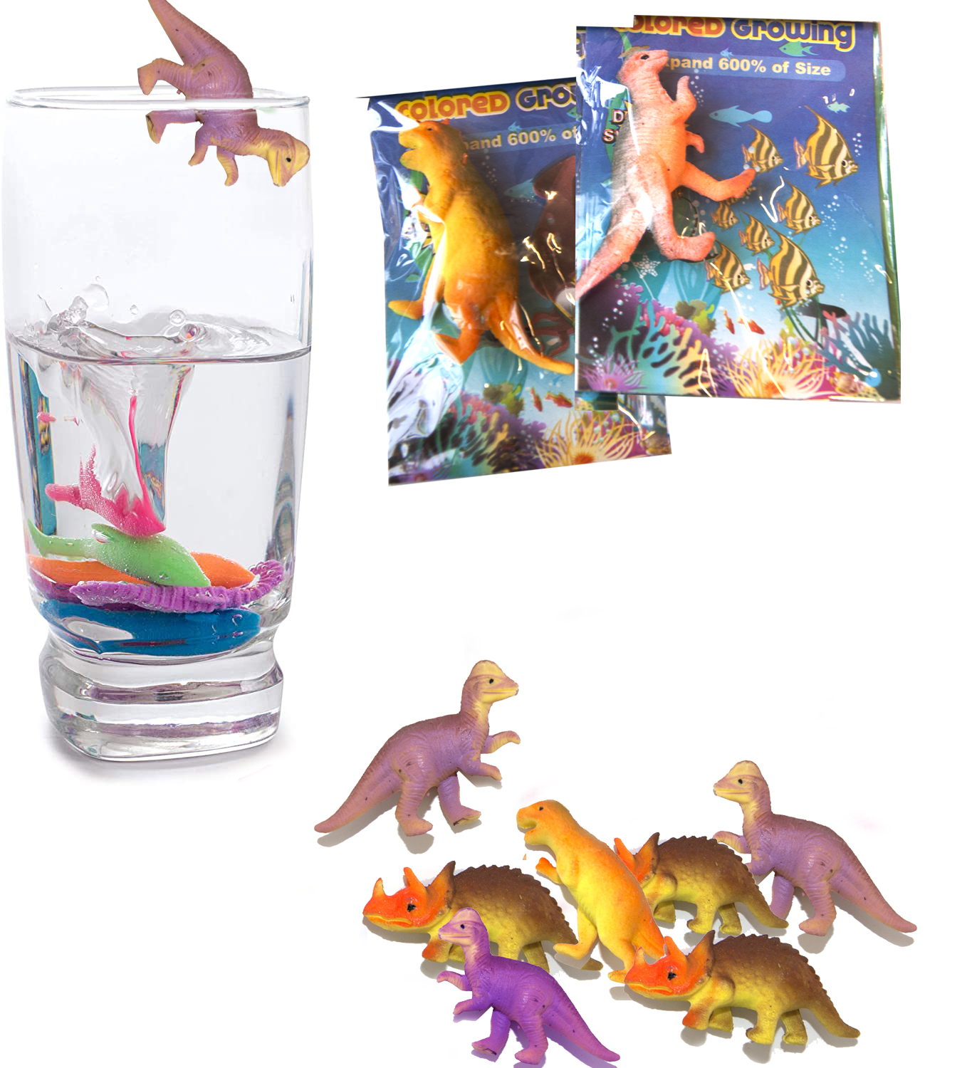 Растущие в воде игрушки 6х3см Динозавры цветные (уп 20шт)