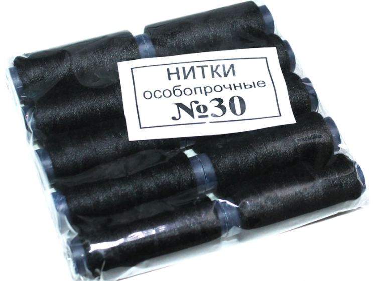 Нитки №30 черные,в упаковке 10 шт