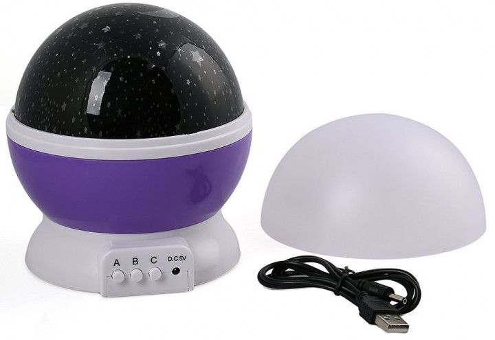 Круглый вращающийся Проектор звездного неба Star Master Dream прекрасный подарок для вашего ребенка. Он осветит комнату вашего малыша прекрасными звездами и луной. Питание светильника возможно от USB-провода или от четырех батареек типа АAA.