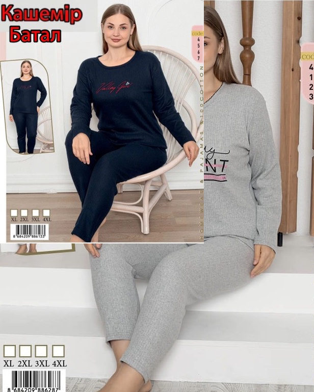 Пижама интерлок-кашемир. Размер XL-4XL (50-56), расцветки в ассорт. Турция