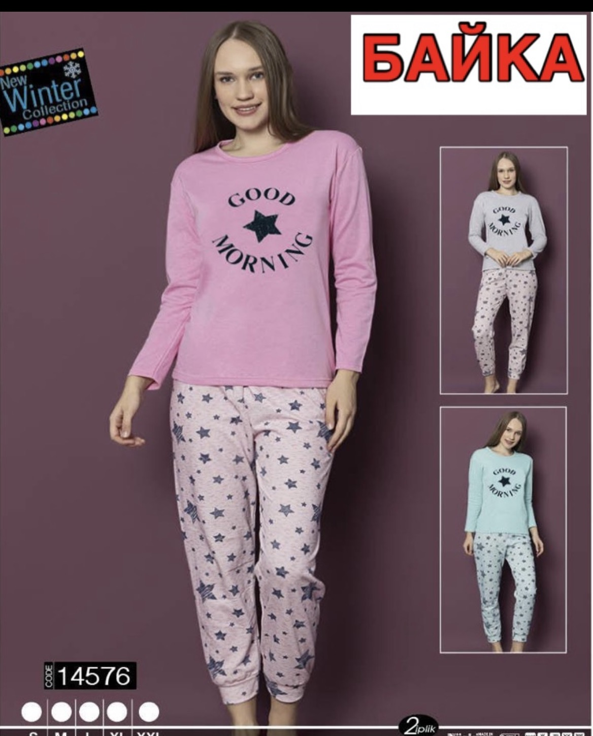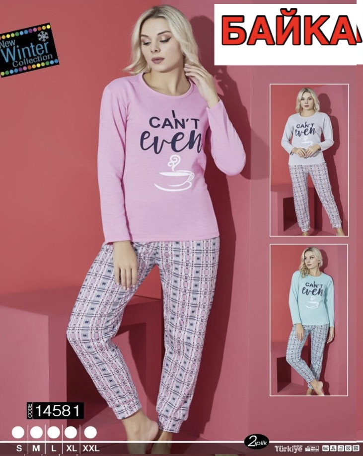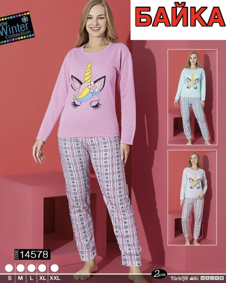 Пижама коттон на байке. Размер S, M,L,XL, 2XL (44-52). Турция. расцветки в ассорт.