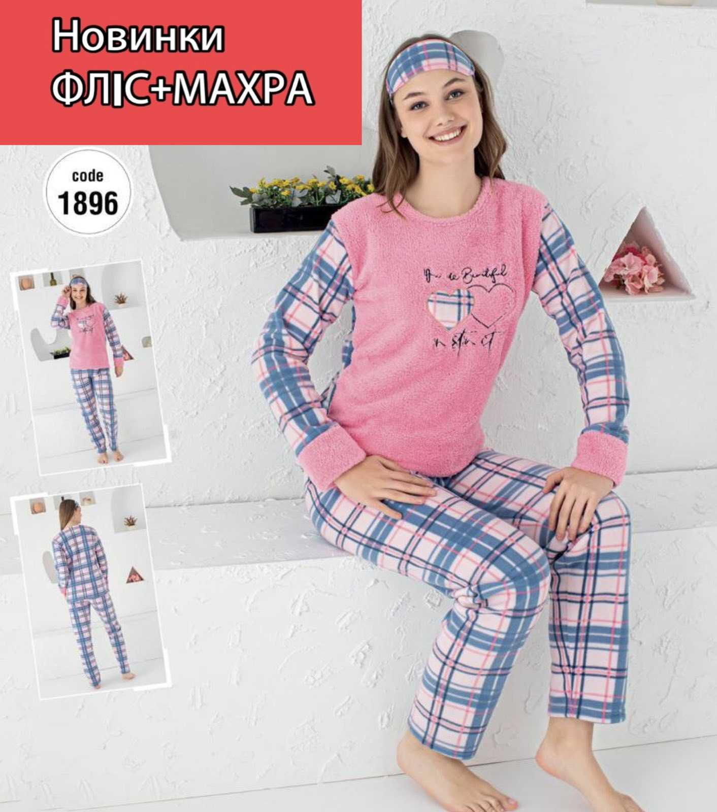 Пижама тёплая махровая + флис. Размер M,L,XL (44-50) расцветки в ассорт. Турция