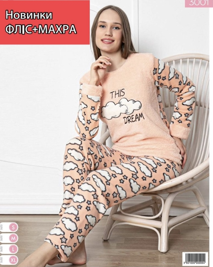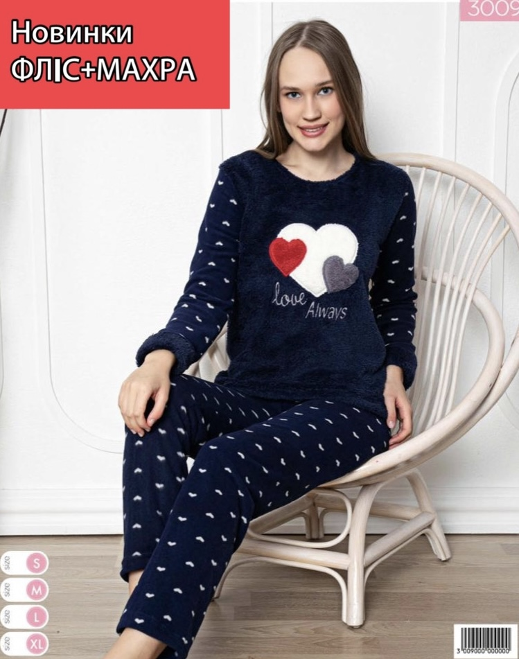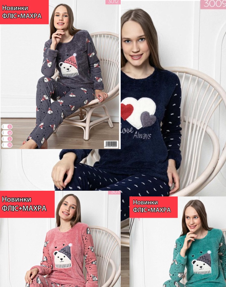Пижама тёплая махровая + флис. Размер M,L,XL (44-50) расцветки в ассорт. Турция