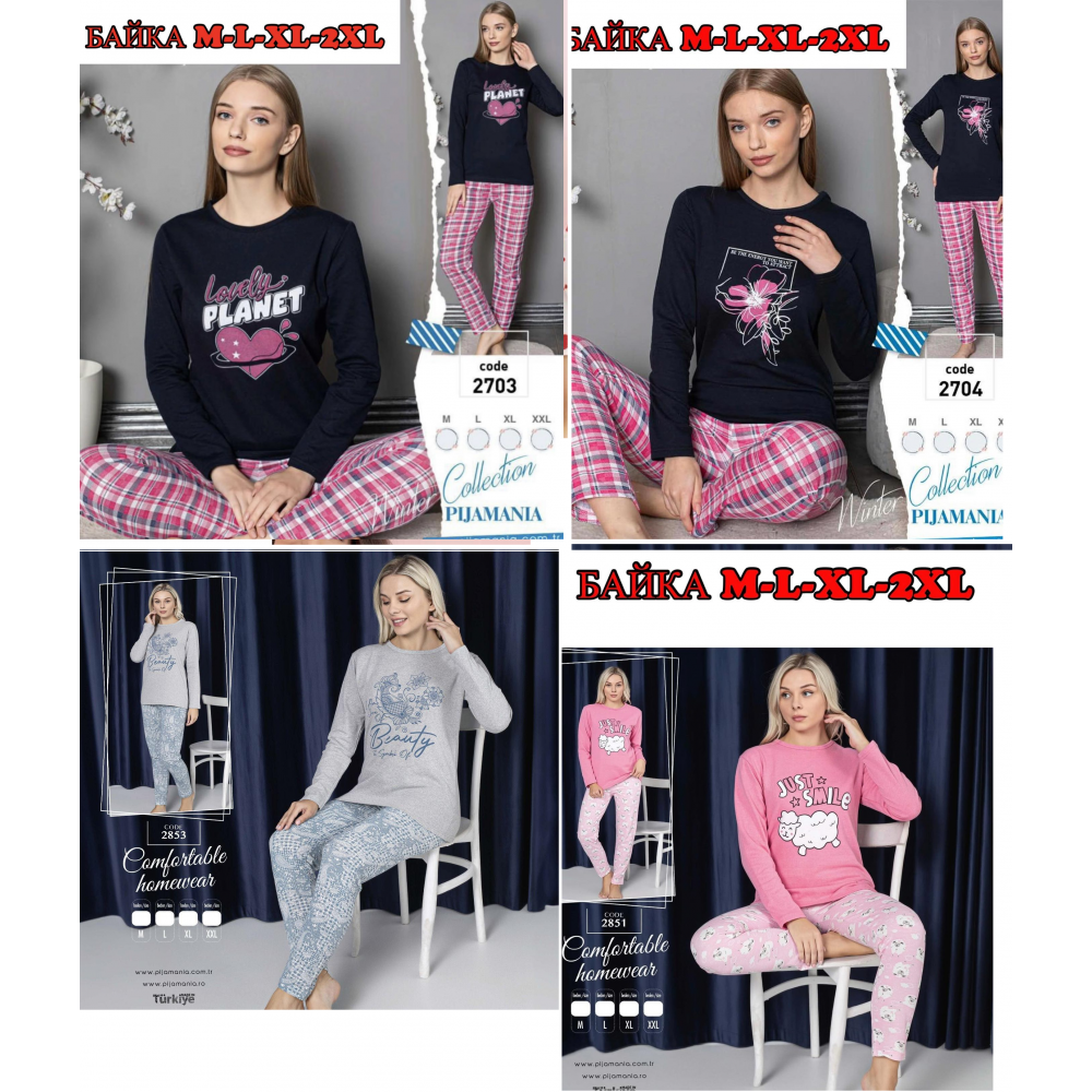 Піжами жіночі коттон на байці, 2нитка з начосом, M (42-44) - 2XL (48-50)