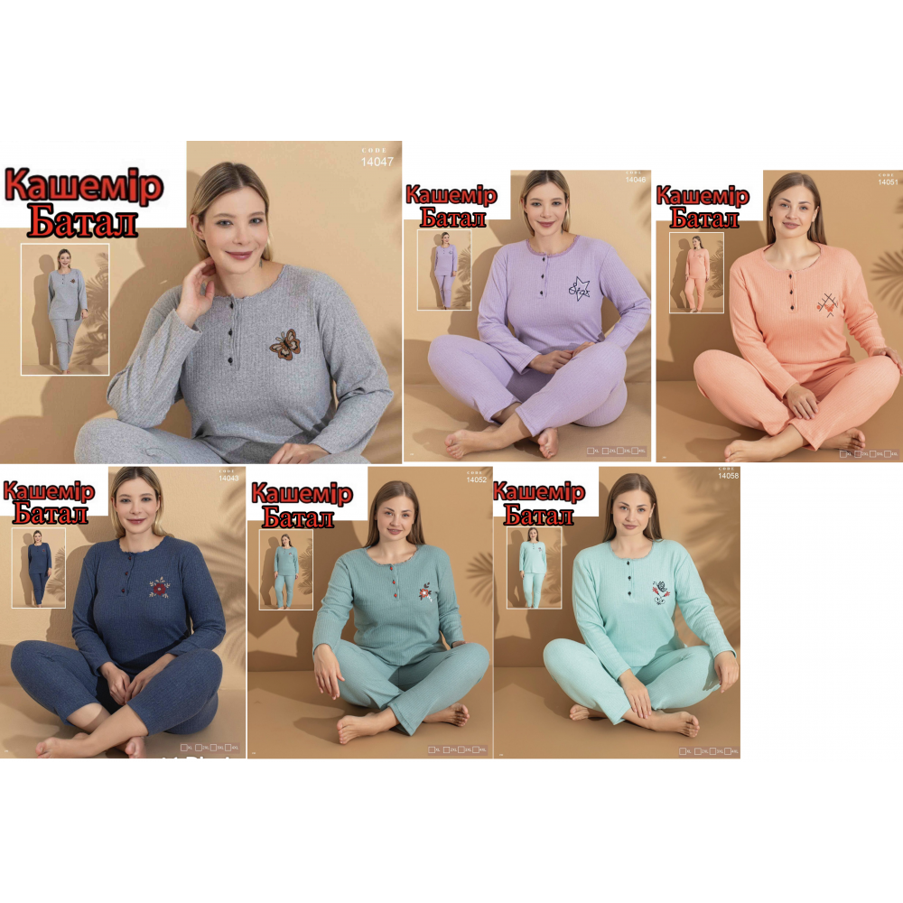Піжами жіночі з довгим рукавом, трикотаж (інтерлок-кашемір), XL-4XL. Туреччина