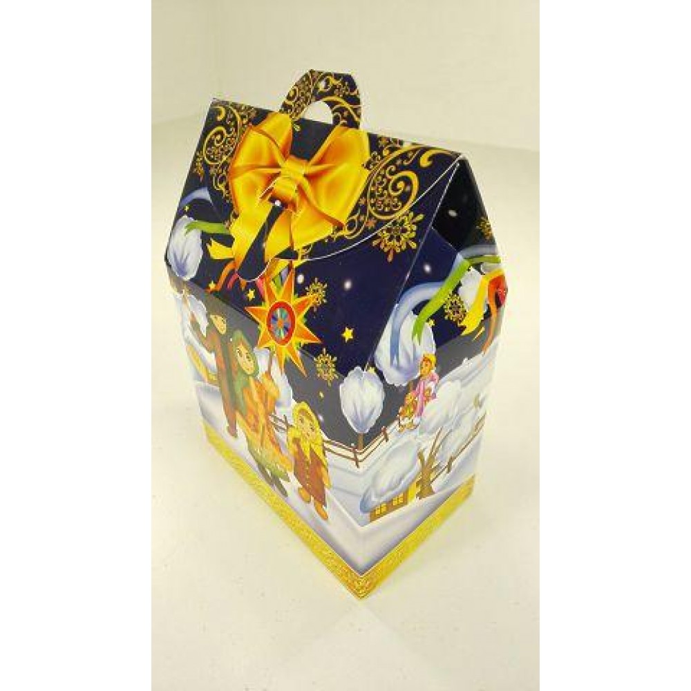Новогодняя картонная коробка для конфет и подарков №228с на 400 грамм "Коляда"