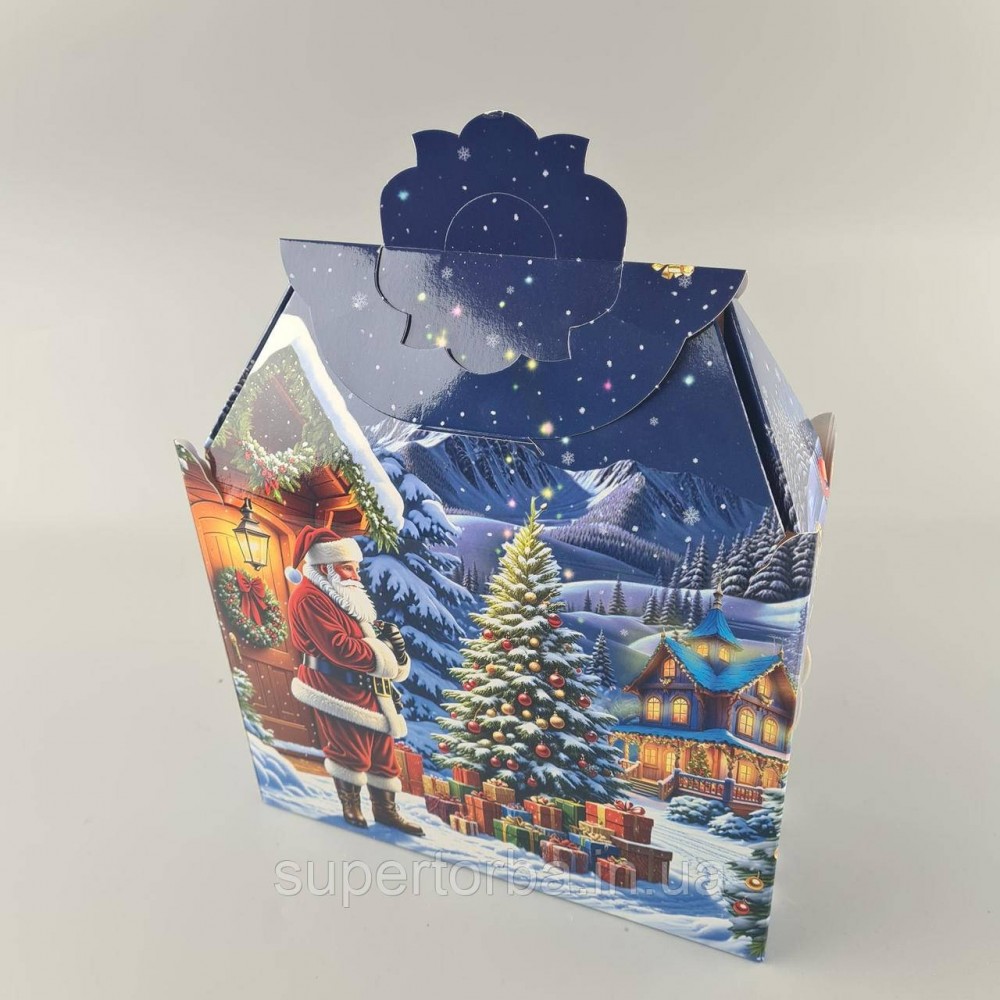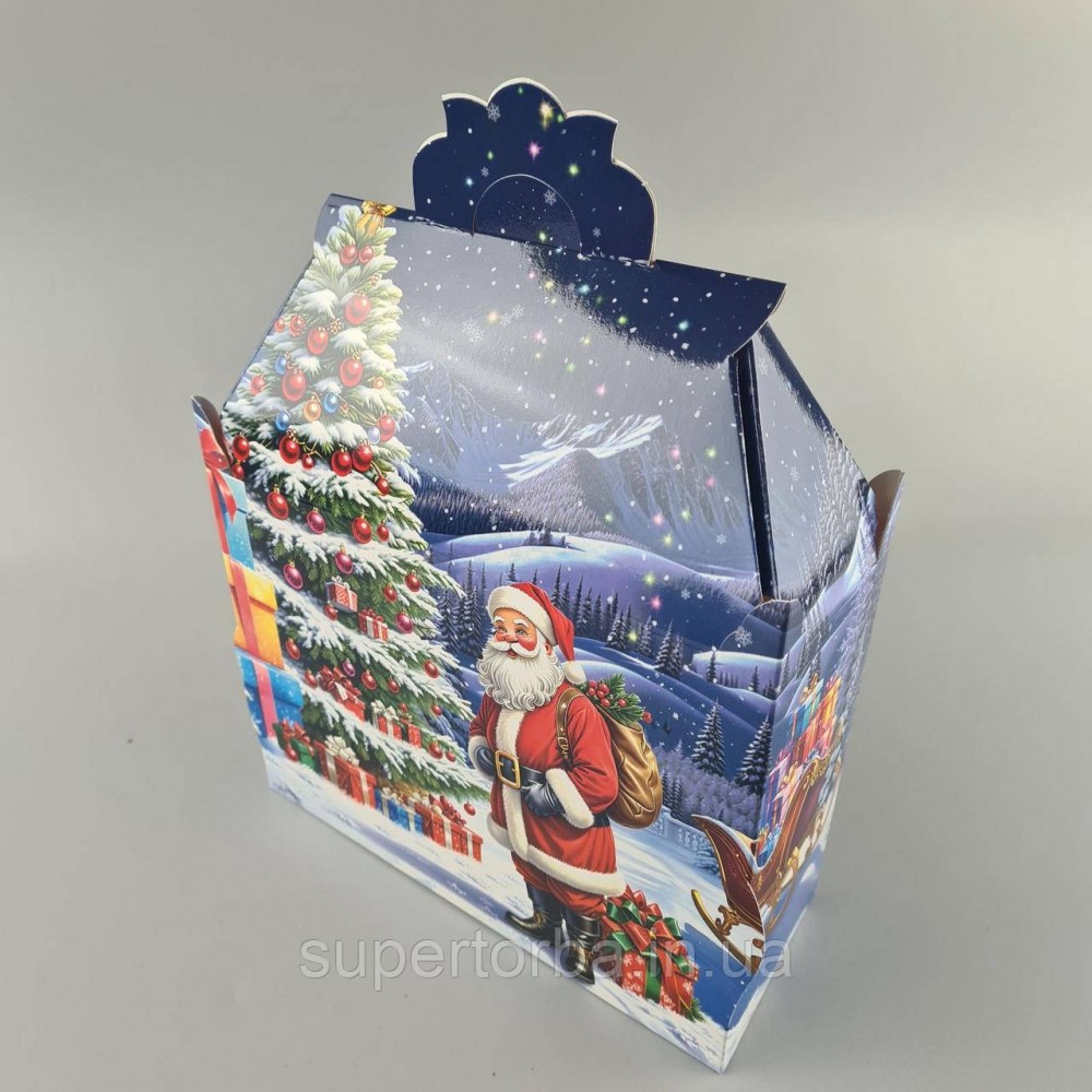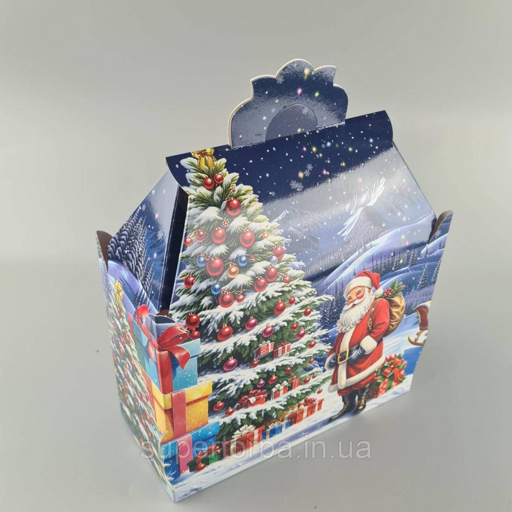 Новогодняя подарочная картонная упаковка для конфет (1000грм) №190 "Санта с елкой" (1 шт)