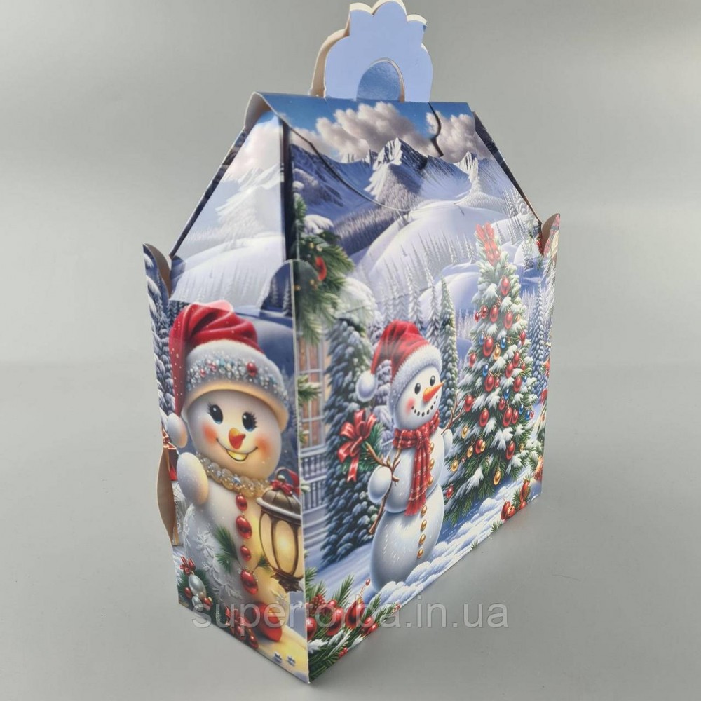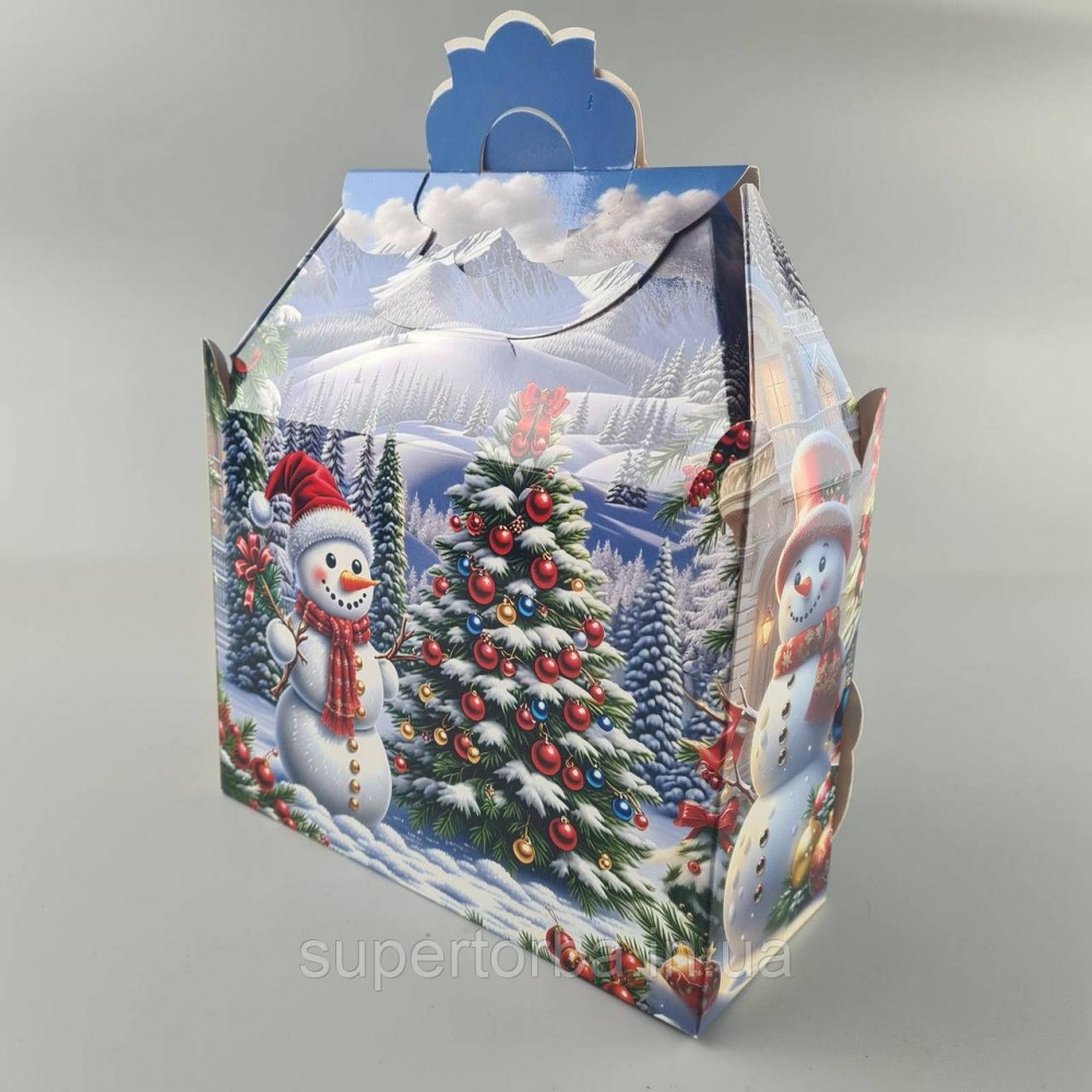 Новогодняя подарочная картонная упаковка для конфет (1000грм) №191 "Снеговик с елкой" (1 шт)