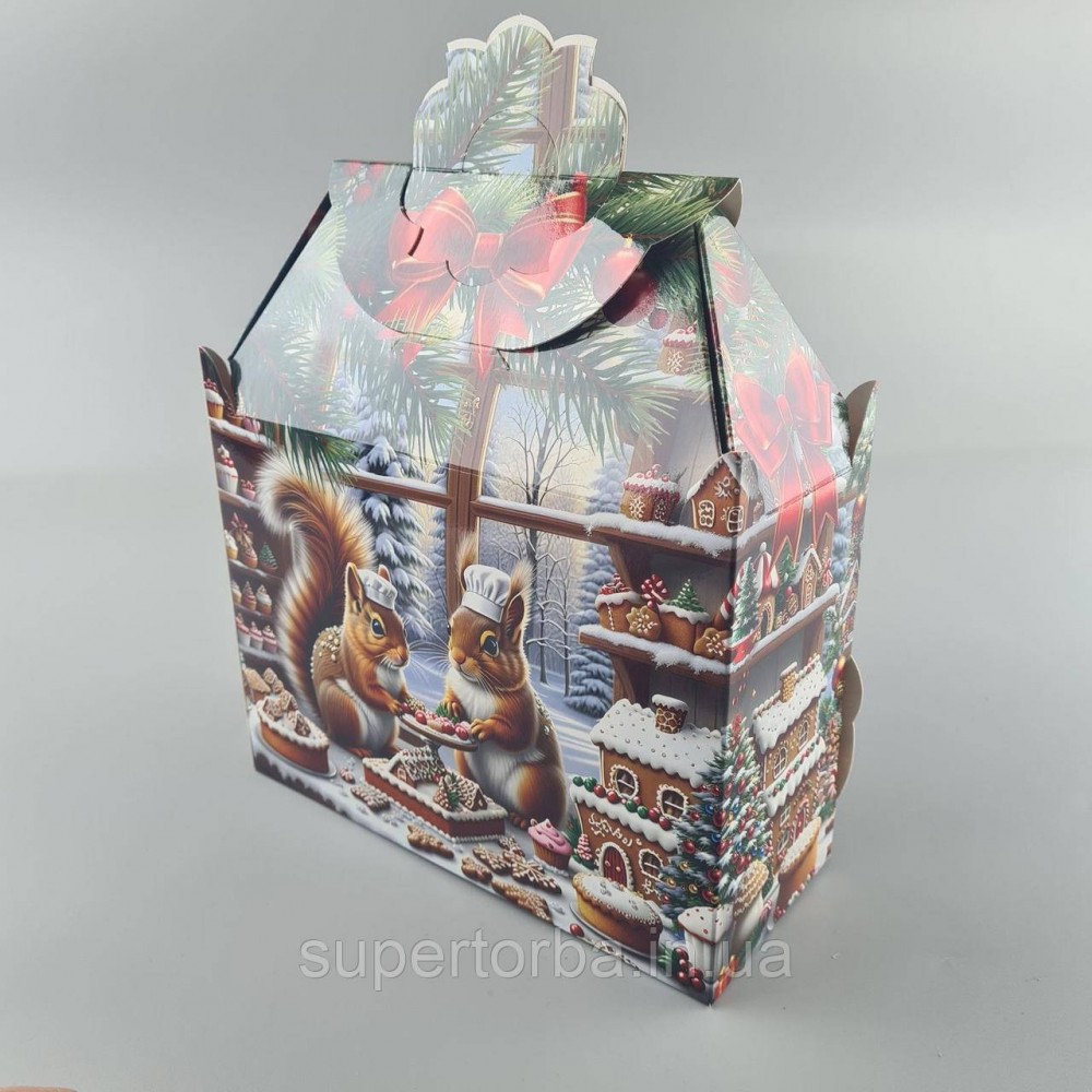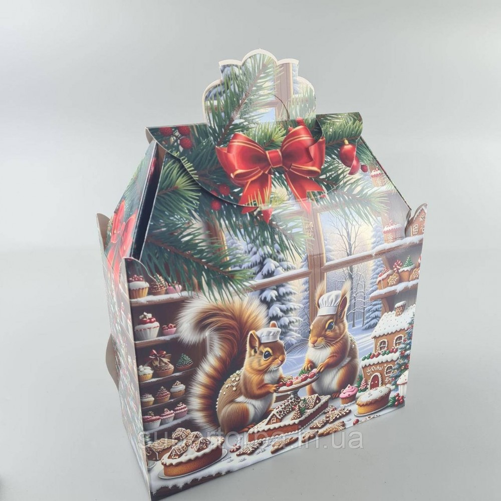 Новогодняя подарочная картонная упаковка для конфет (1000грм) №192 "Белки поварята" (1 шт)