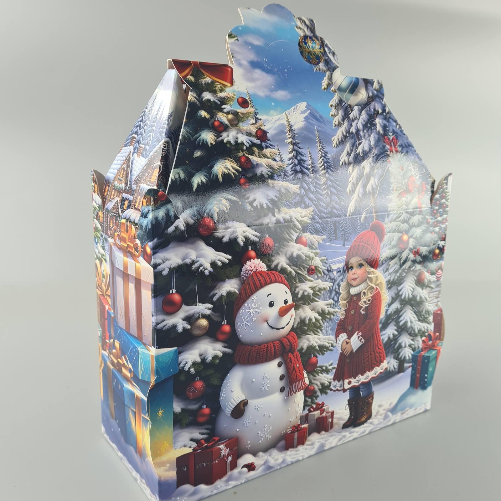 Новогодняя подарочная картонная упаковка для конфет (1000грм) №193 "Дети с снеговиком" (1 шт)