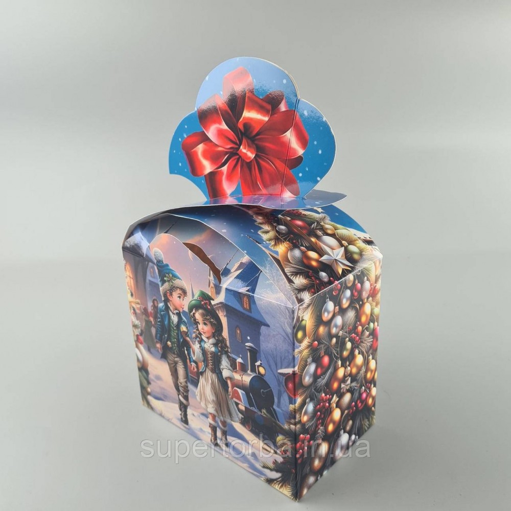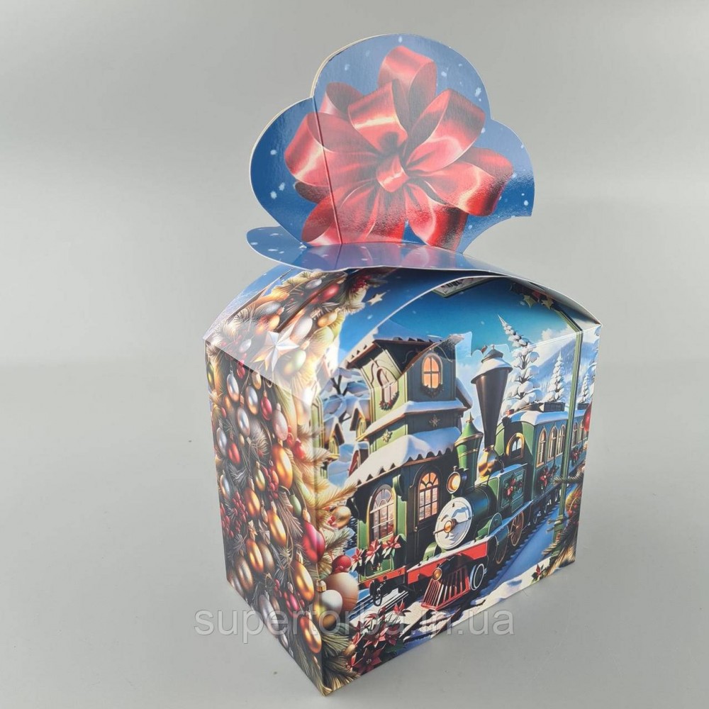 Новогодняя подарочная картонная упаковка для конфет (1000грм) №198 "Новогодние путешествие" (1 шт)