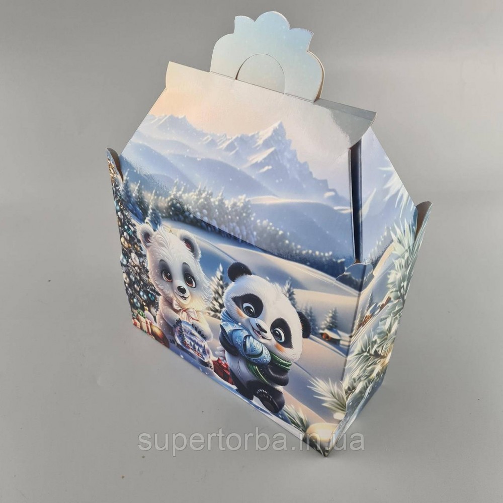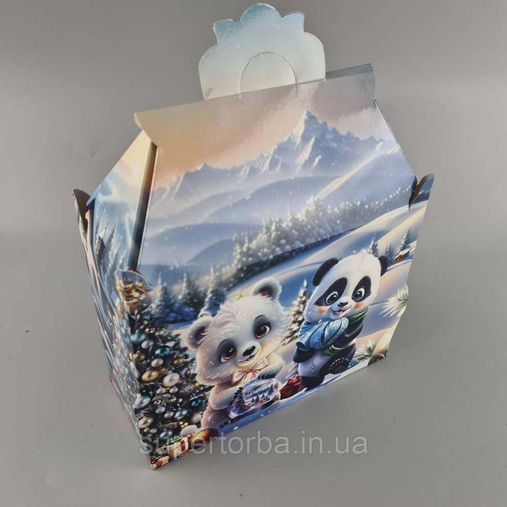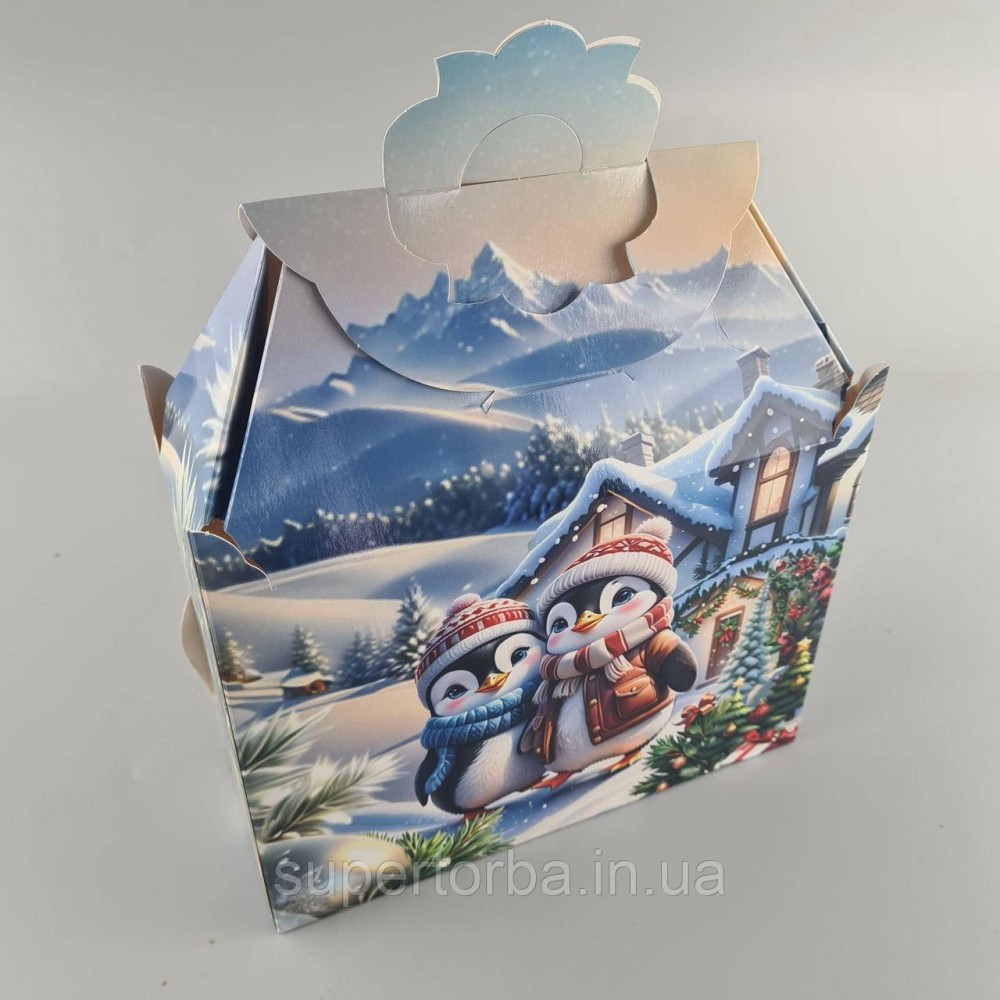 Новогодняя подарочная картонная упаковка для конфет (1000грм) №201 "Новогодний дом" (1 шт)