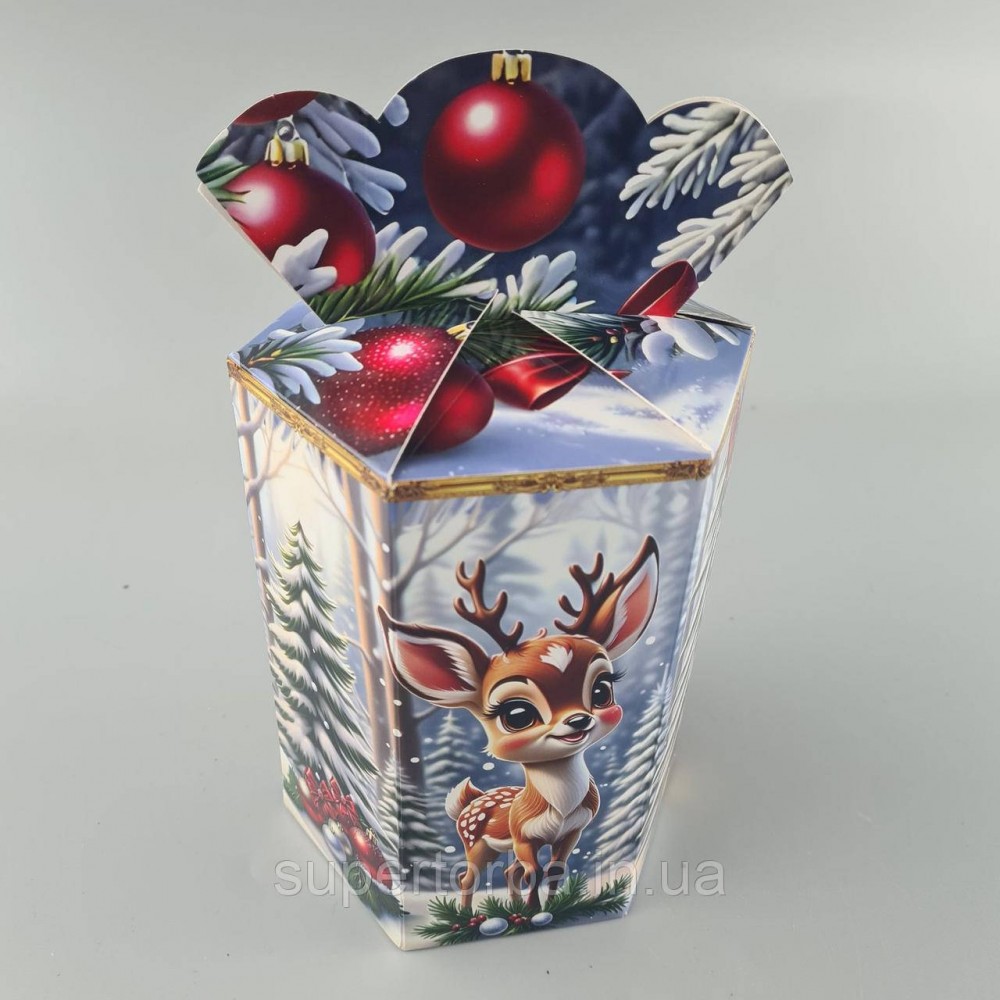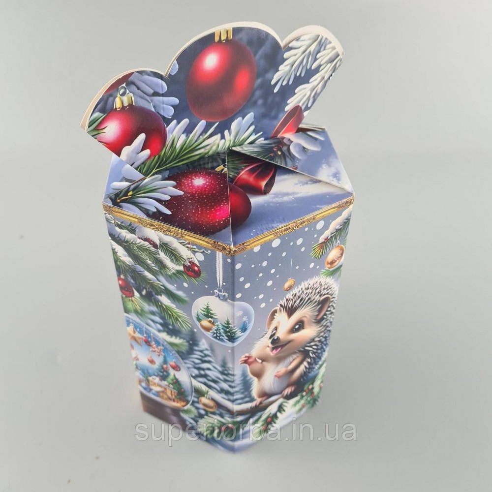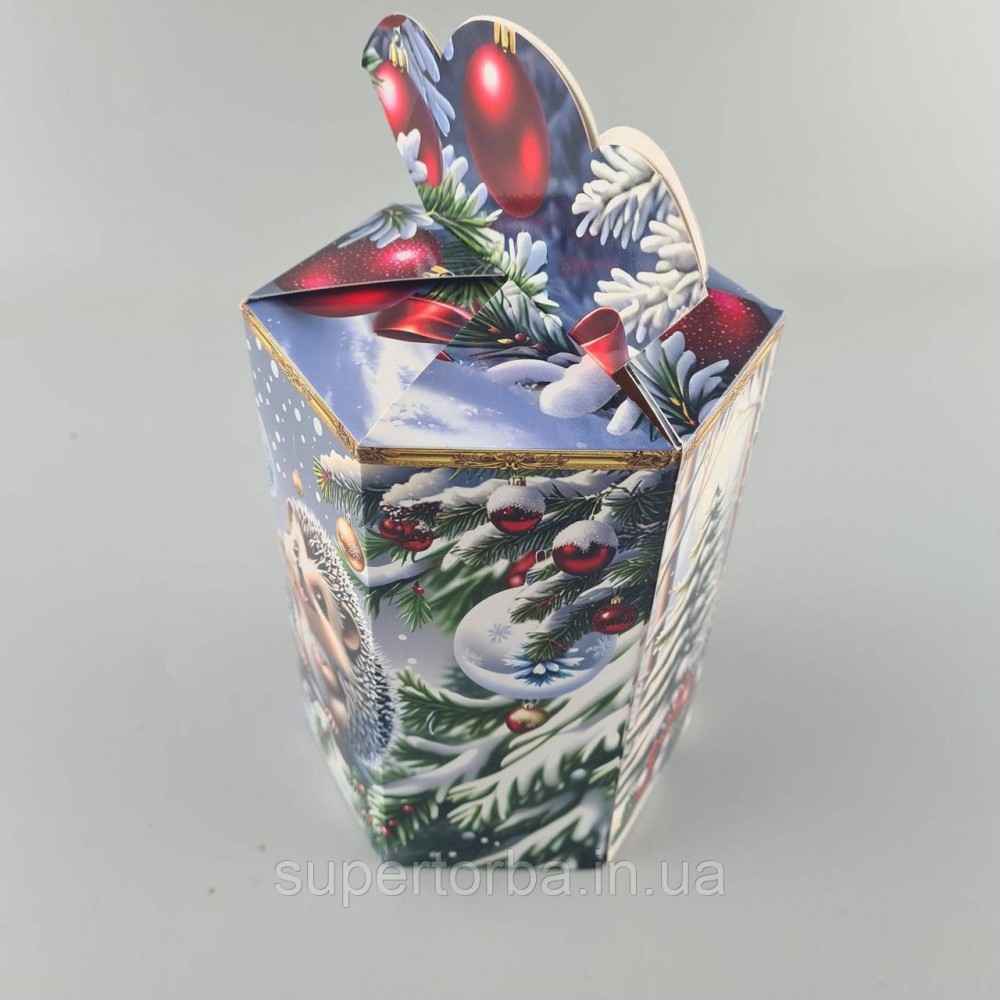 Новогодняя подарочная картонная упаковка для конфет (600грм) №227 "Дети в лесу" (1 шт)
