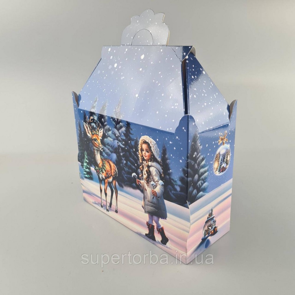 Новогодняя подарочная картонная упаковка для конфет (1000грм) №206 "Новый год в лесу" (1 шт)