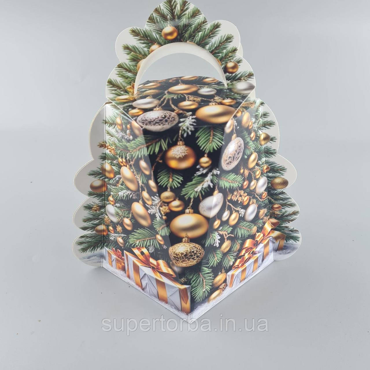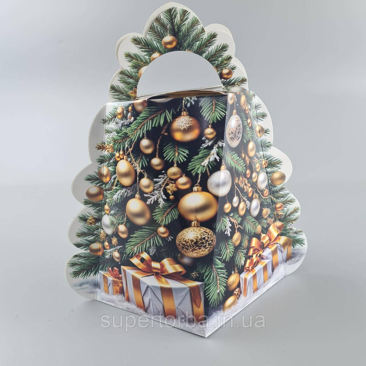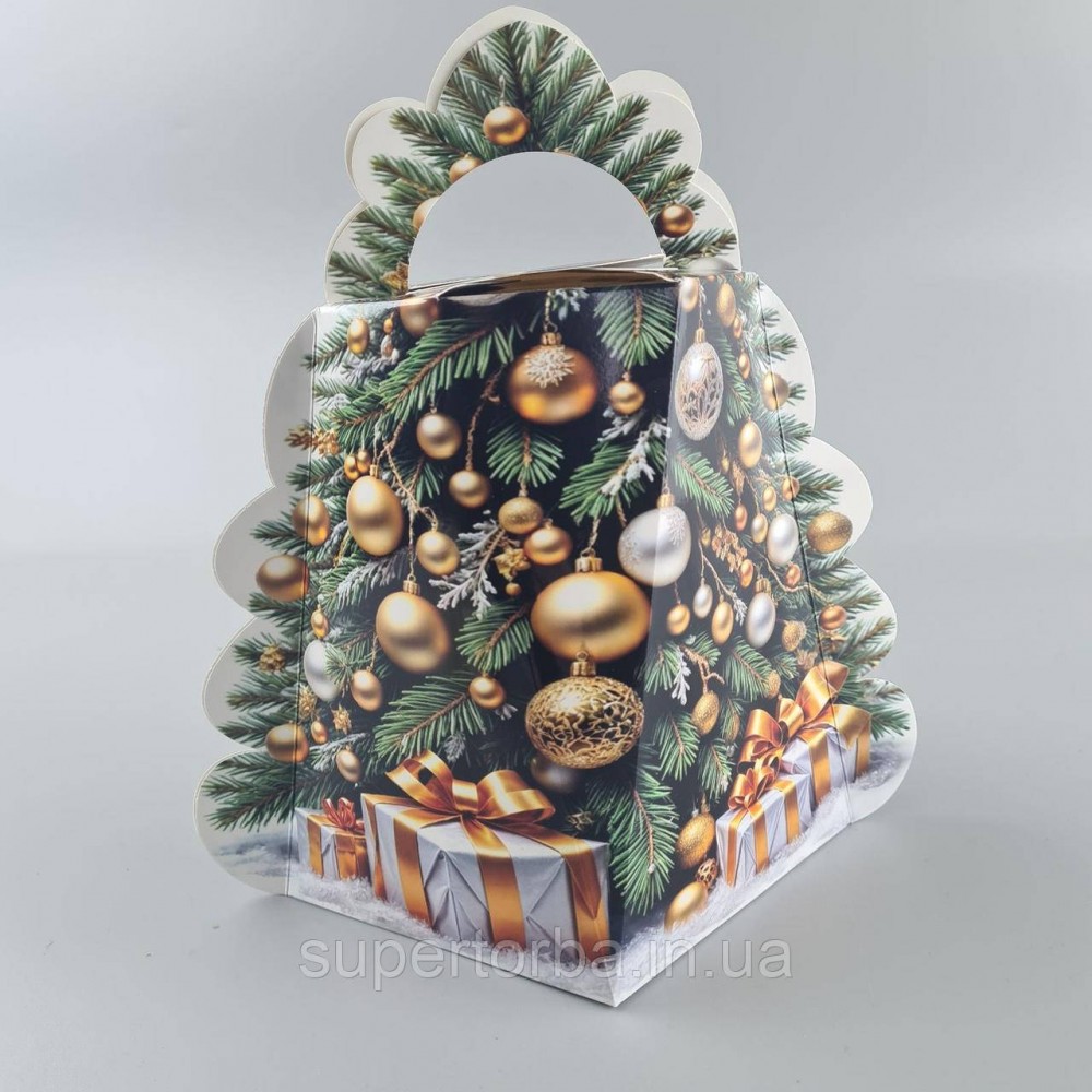 Новогодняя подарочная картонная упаковка для конфет (1000грм) №223 "Елка с золотыми шарами" (1 шт)