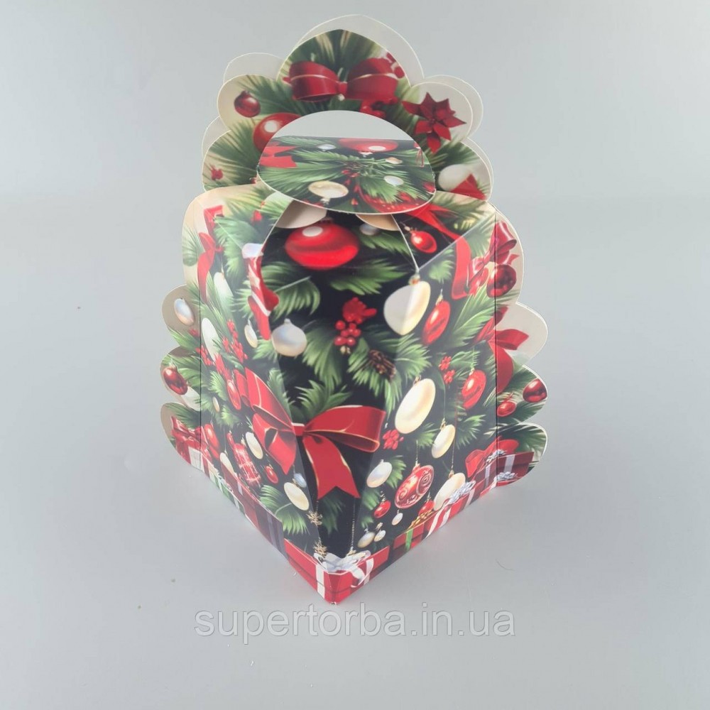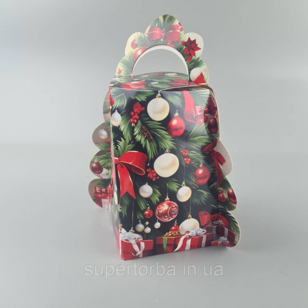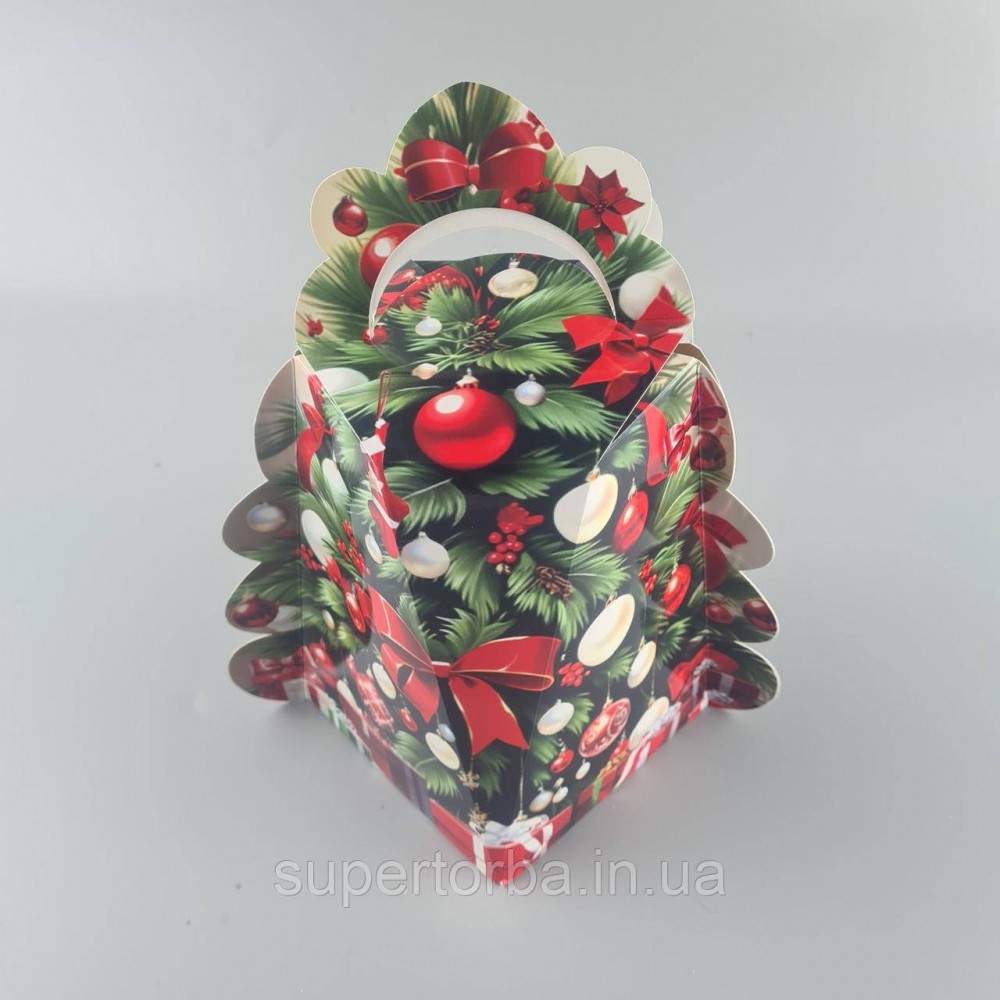 Новогодняя подарочная картонная упаковка для конфет (1000грм) №224 "Елка с красными шарами" (1 шт)