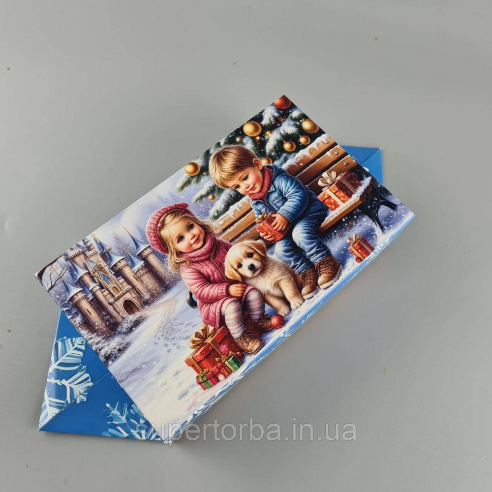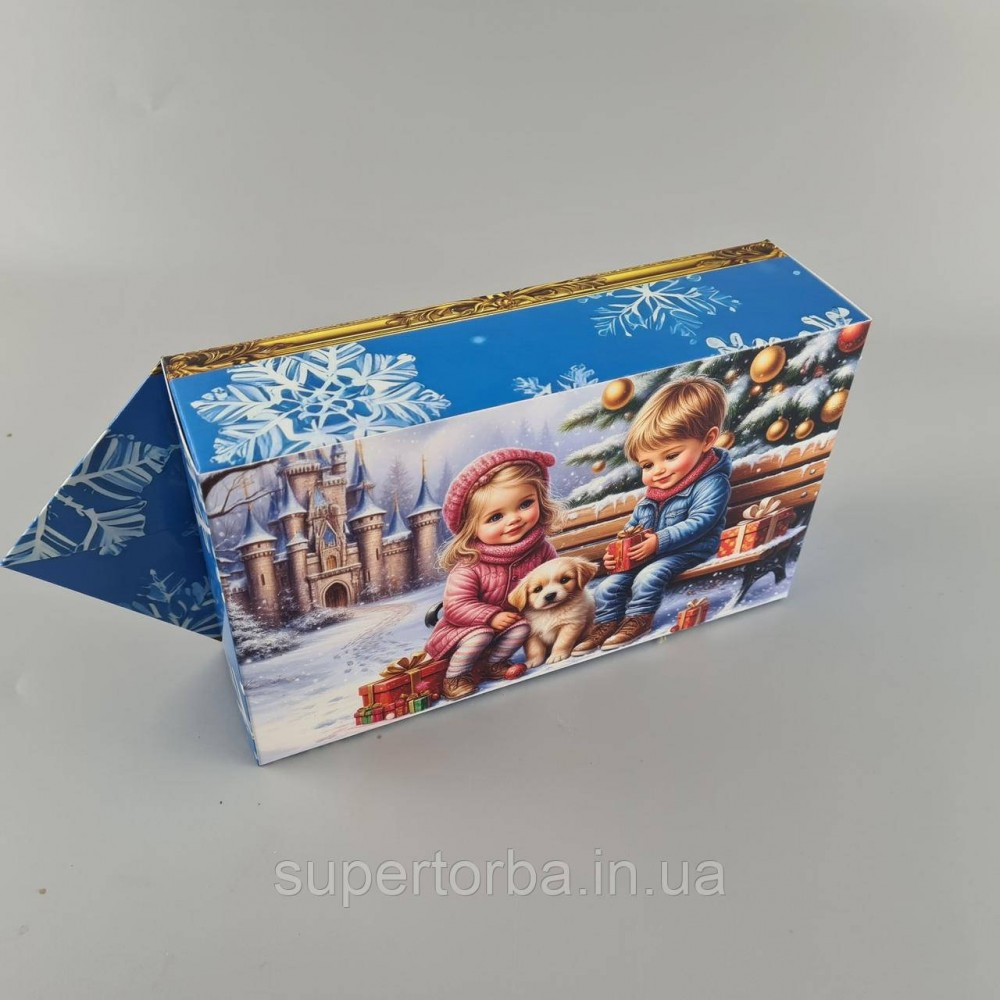 Новогодняя подарочная картонная упаковка для конфет (500грм) №239 "Дети с щенком" (1 шт)