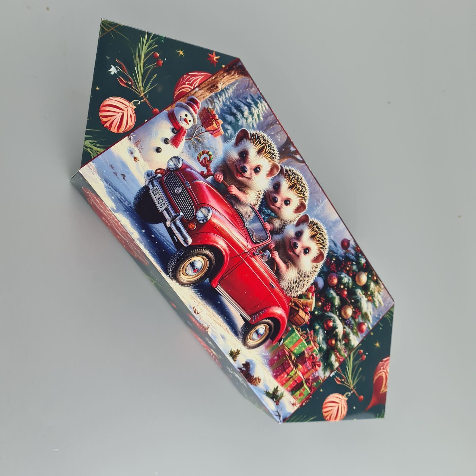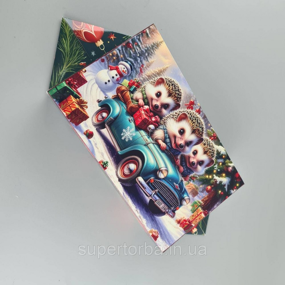 Новогодняя подарочная картонная упаковка для конфет (500грм) №240 "Ежики на машинке" (1 шт)