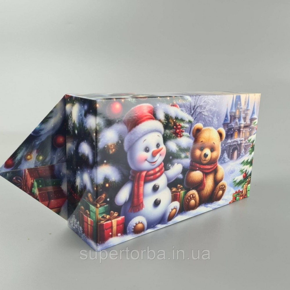 Новогодняя подарочная картонная упаковка для конфет (1000грм) №193 "Дети с снеговиком" (1 шт)