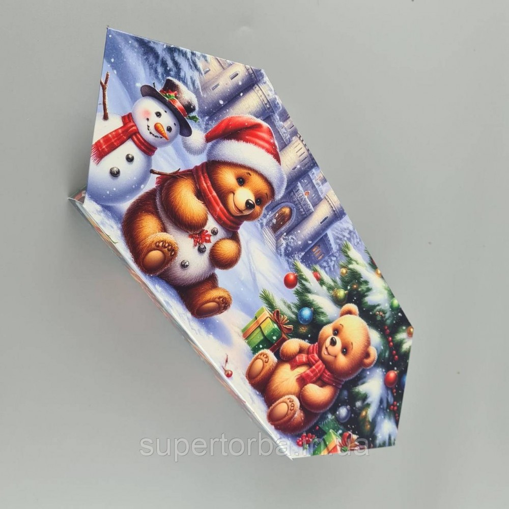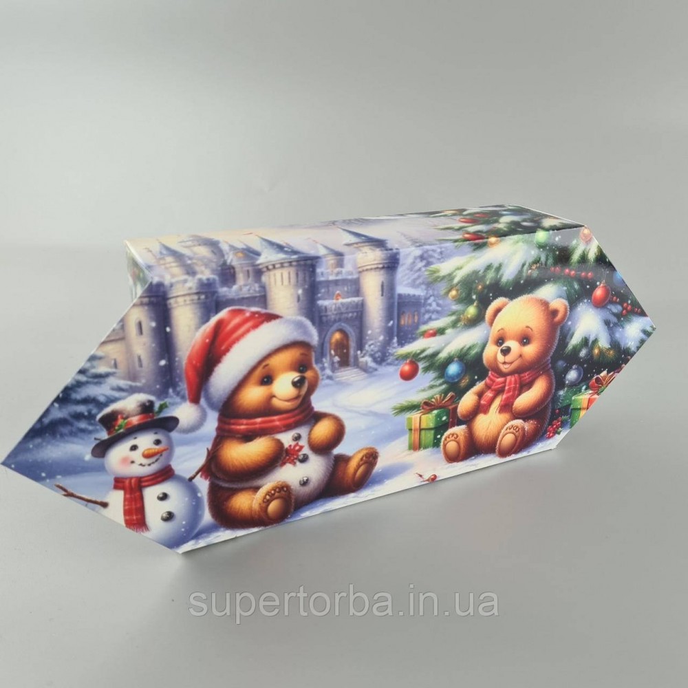 Новогодняя подарочная картонная упаковка для конфет (500грм) №241 "Медвежата с подарками" (1 шт)