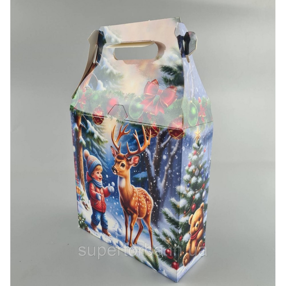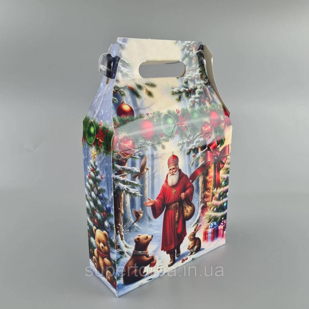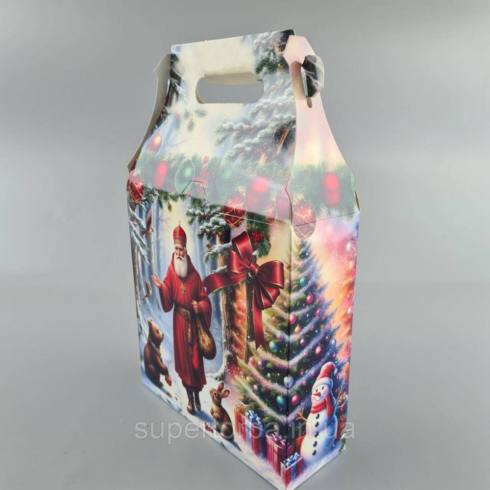 Новогодняя подарочная картонная упаковка для конфет (600грм) №228 "Санта с подарками" (1 шт)