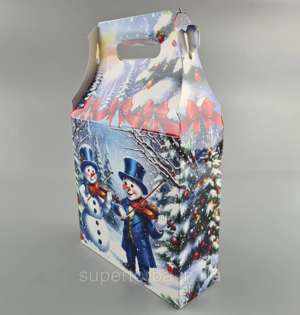 Новогодняя подарочная картонная упаковка для конфет (600грм) №226 "Снеговики со скрипкой" (1 шт)