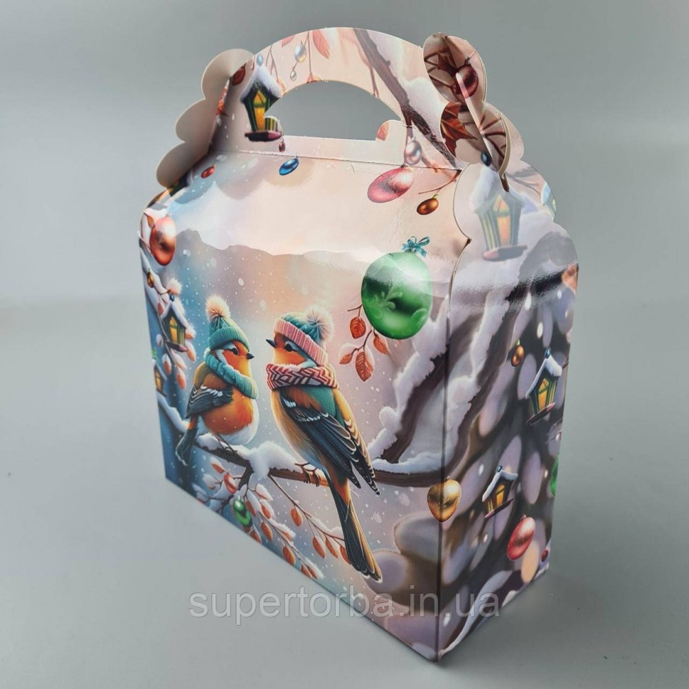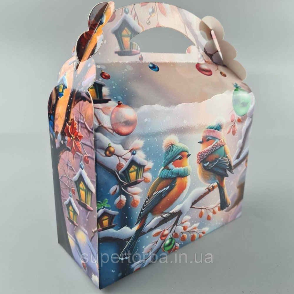 Новогодняя подарочная картонная упаковка для конфет (800грм) №207 "Зимние синички" (1 шт)