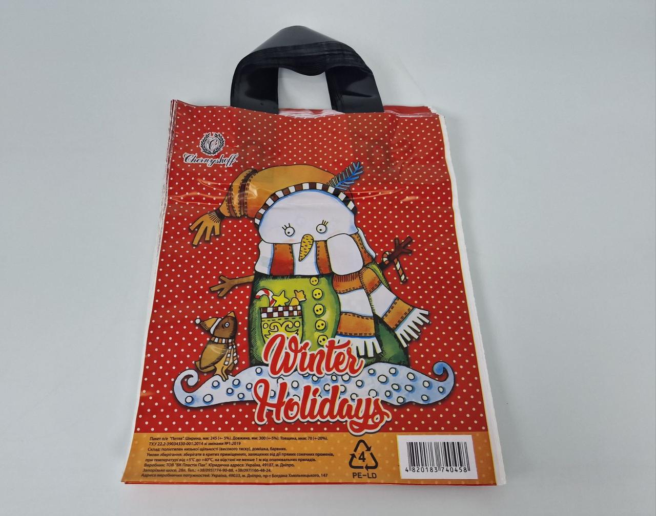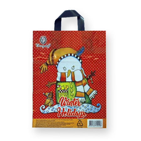 Пакет подарочный новогодний под бутылку, 4 дизайна, 210g, 35 х 12 х 9 см (2626)