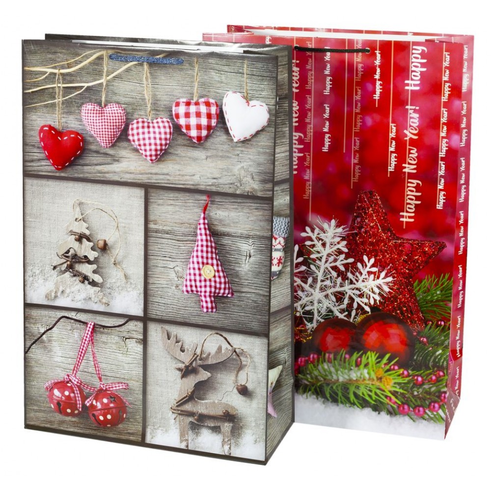 Новогодний пакет с прорезной ручкой размер 40х45 "Шампанское " Комсерв 25 шт/уп.