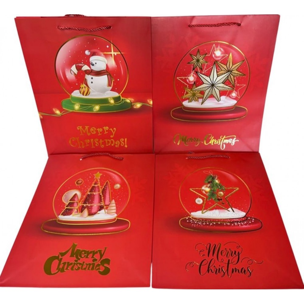 Бумажные новогодние пакеты большого размера горизонтальные 36х22х10 nBG-07 12 шт/уп.