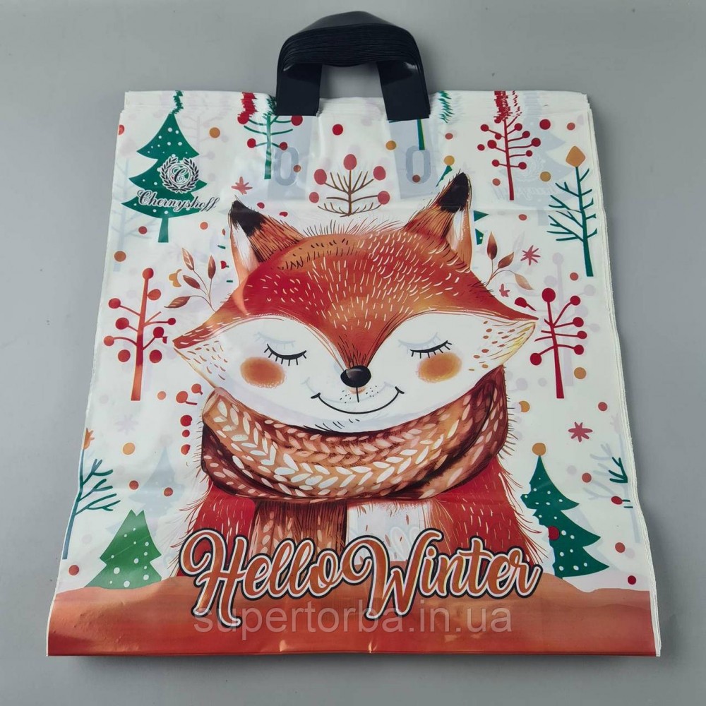 Пакет новогодний 40х42 с петлевой ручкой полиэтиленовый "Голубой подарок" Комсерв 25 шт/уп.