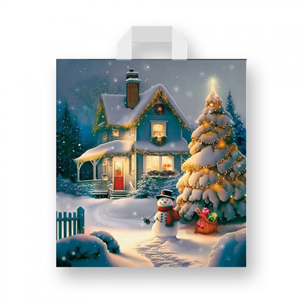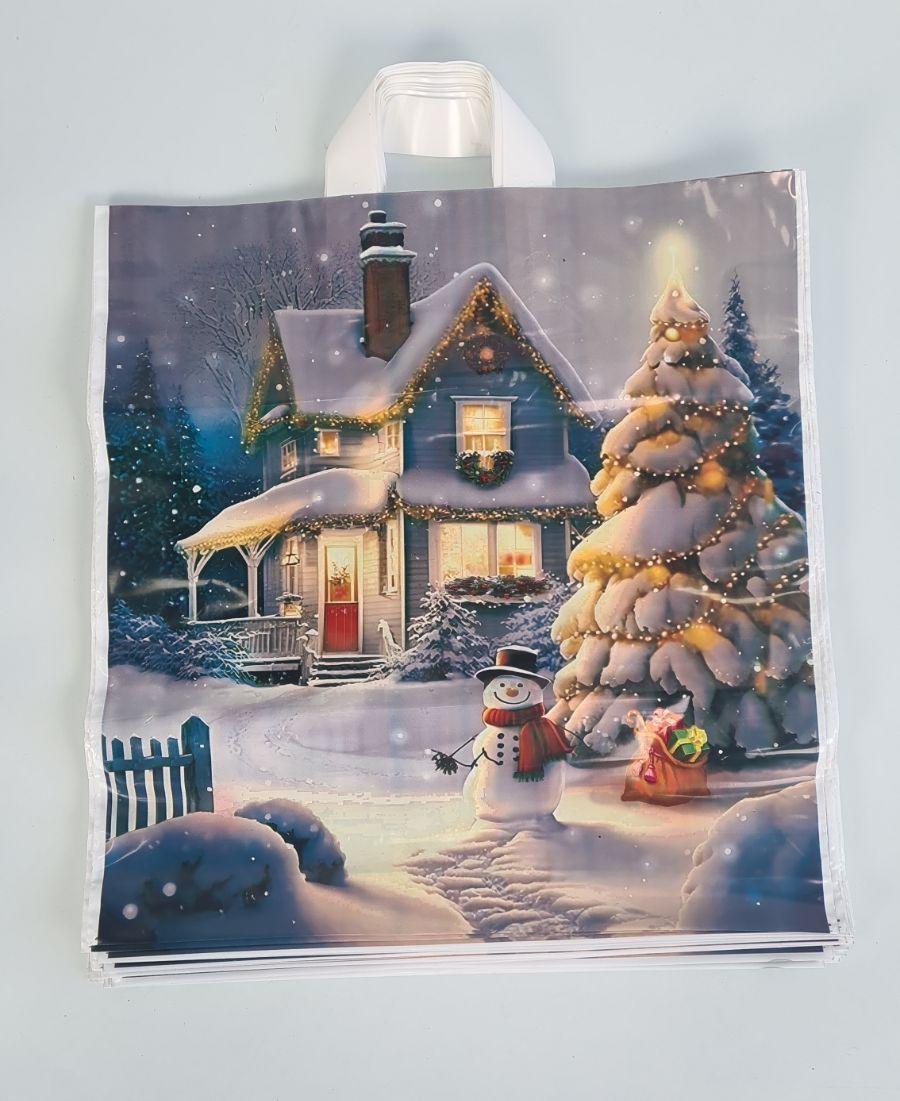 Пакет с петлевой ручкой новогодний 40х42 полиэтиленовый "Домик снеговика" Комсерв 25 шт/уп.