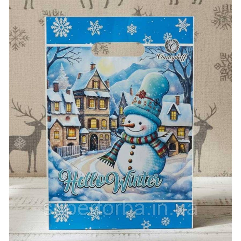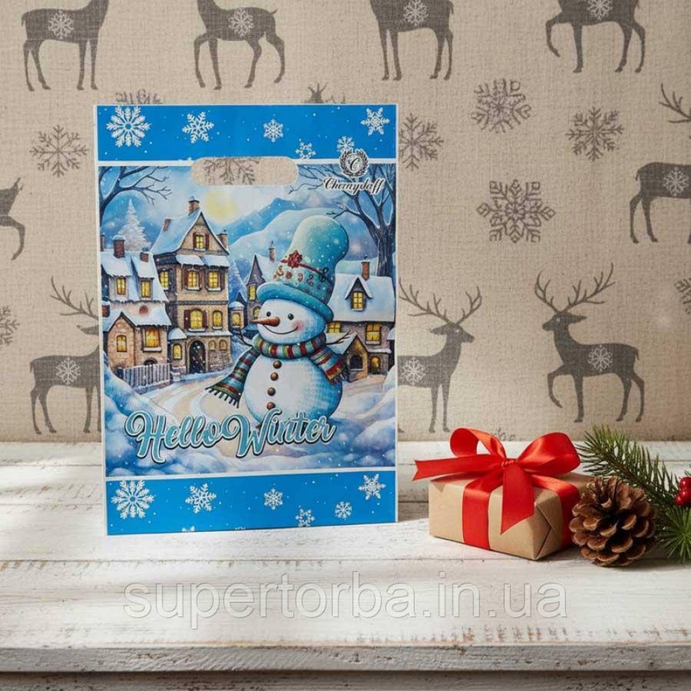 Пакеты новогодние с прорубной ручкой 22×30 «Снеговик»