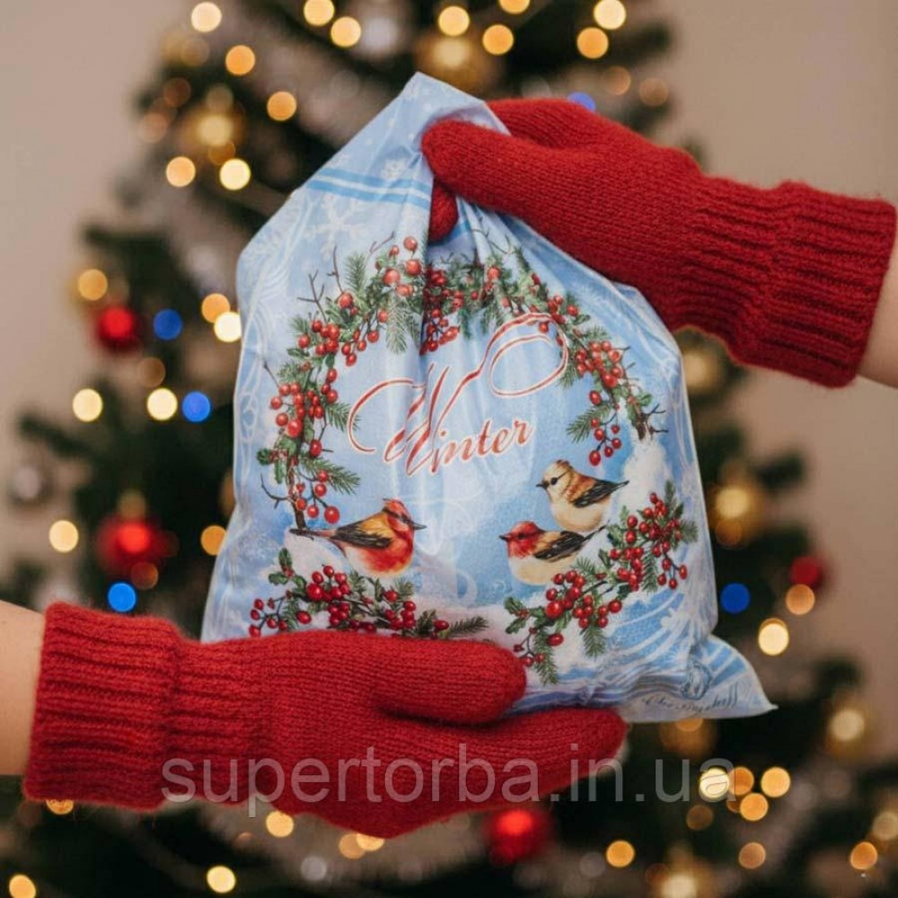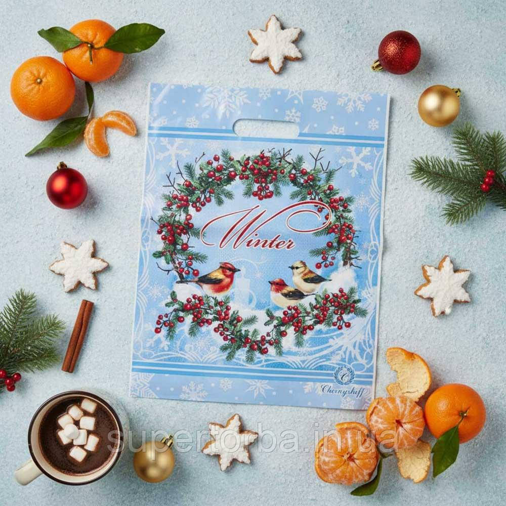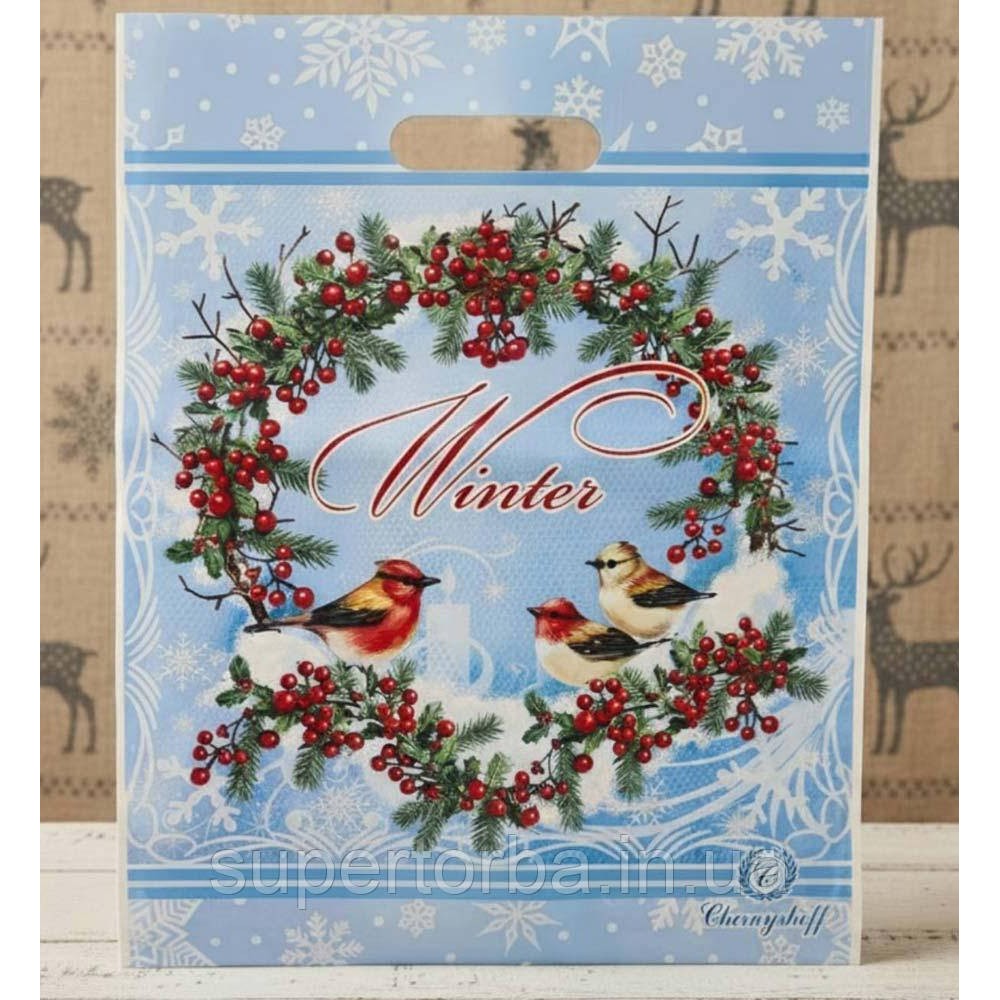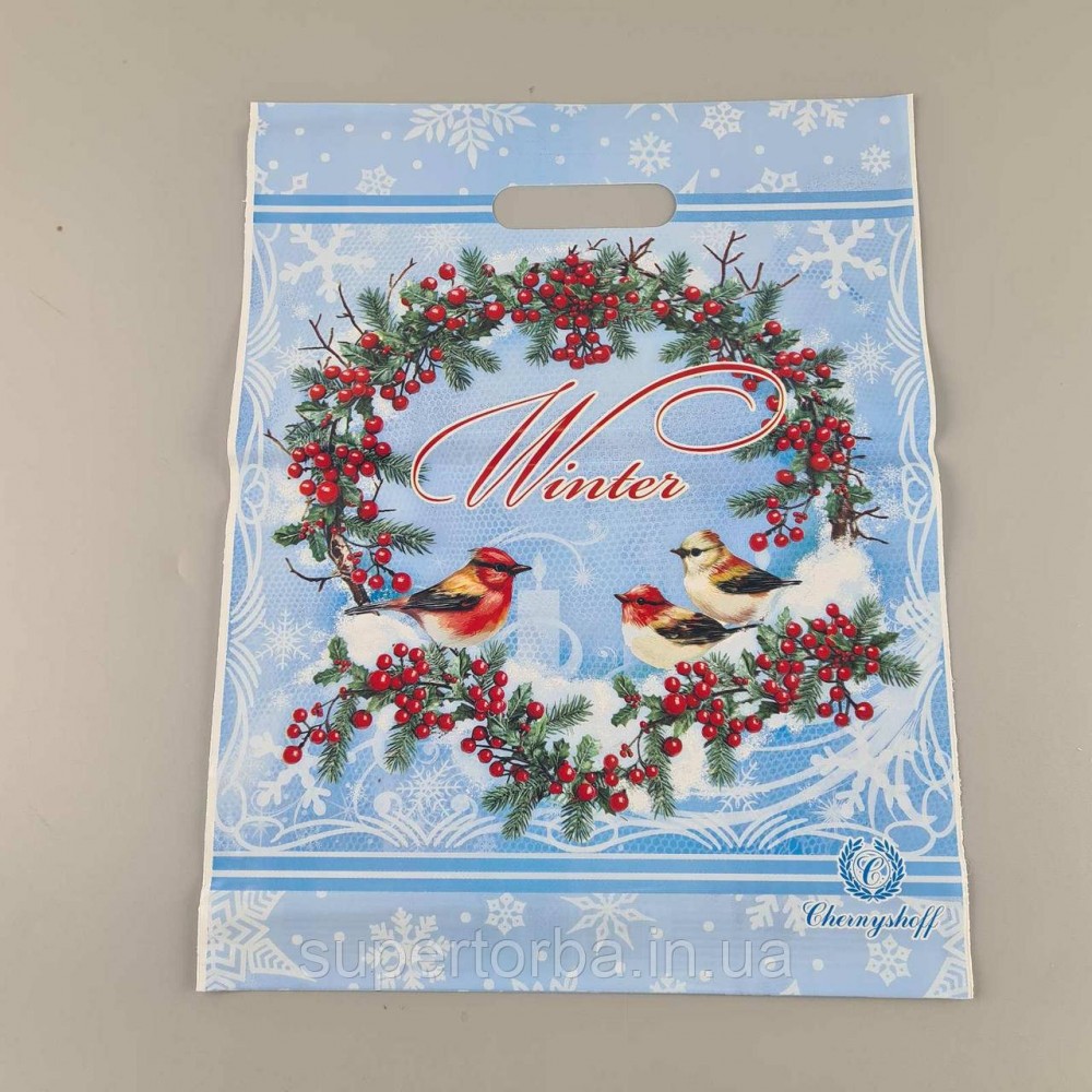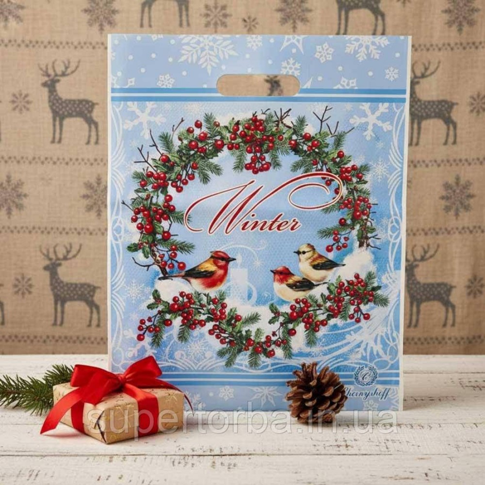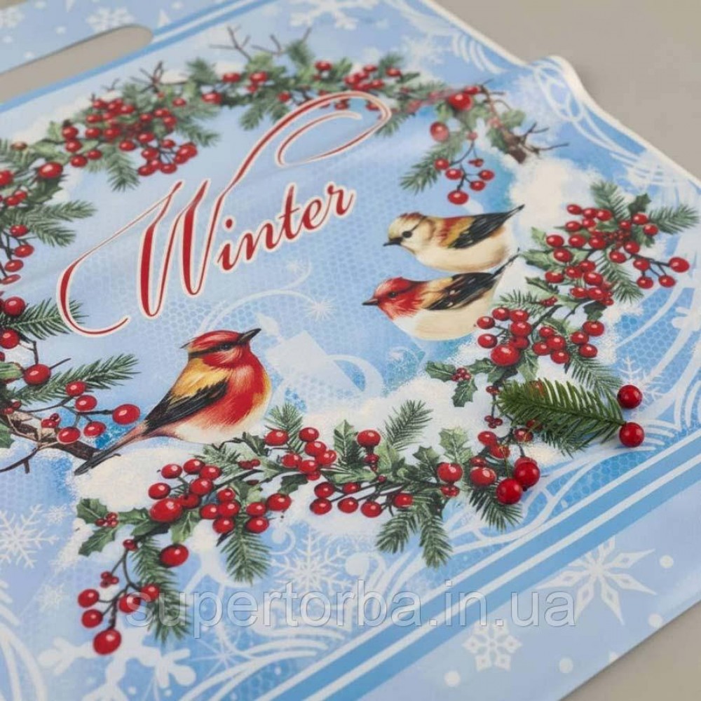 Пакеты новогодние с прорубной ручкой 29×37 «Зимние Птицы»