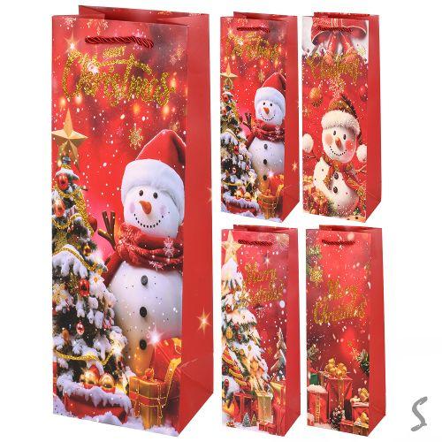Бумажные новогодние пакеты большого размера горизонтальные 36х22х10 nBG-07 12 шт/уп.