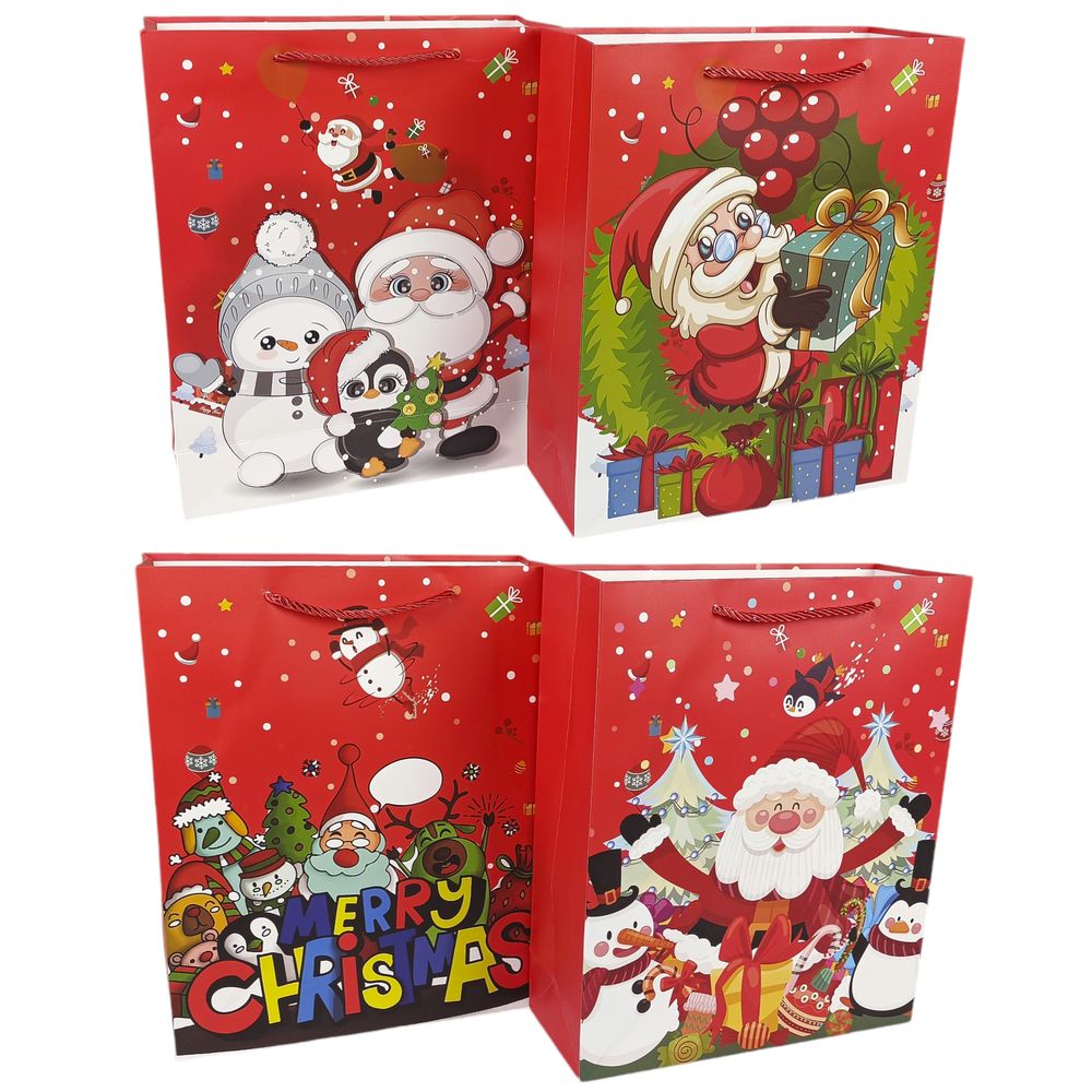 Бумажные пакет большой вертикальный размер 25х37х8 Новый Год 006 12 шт/уп.