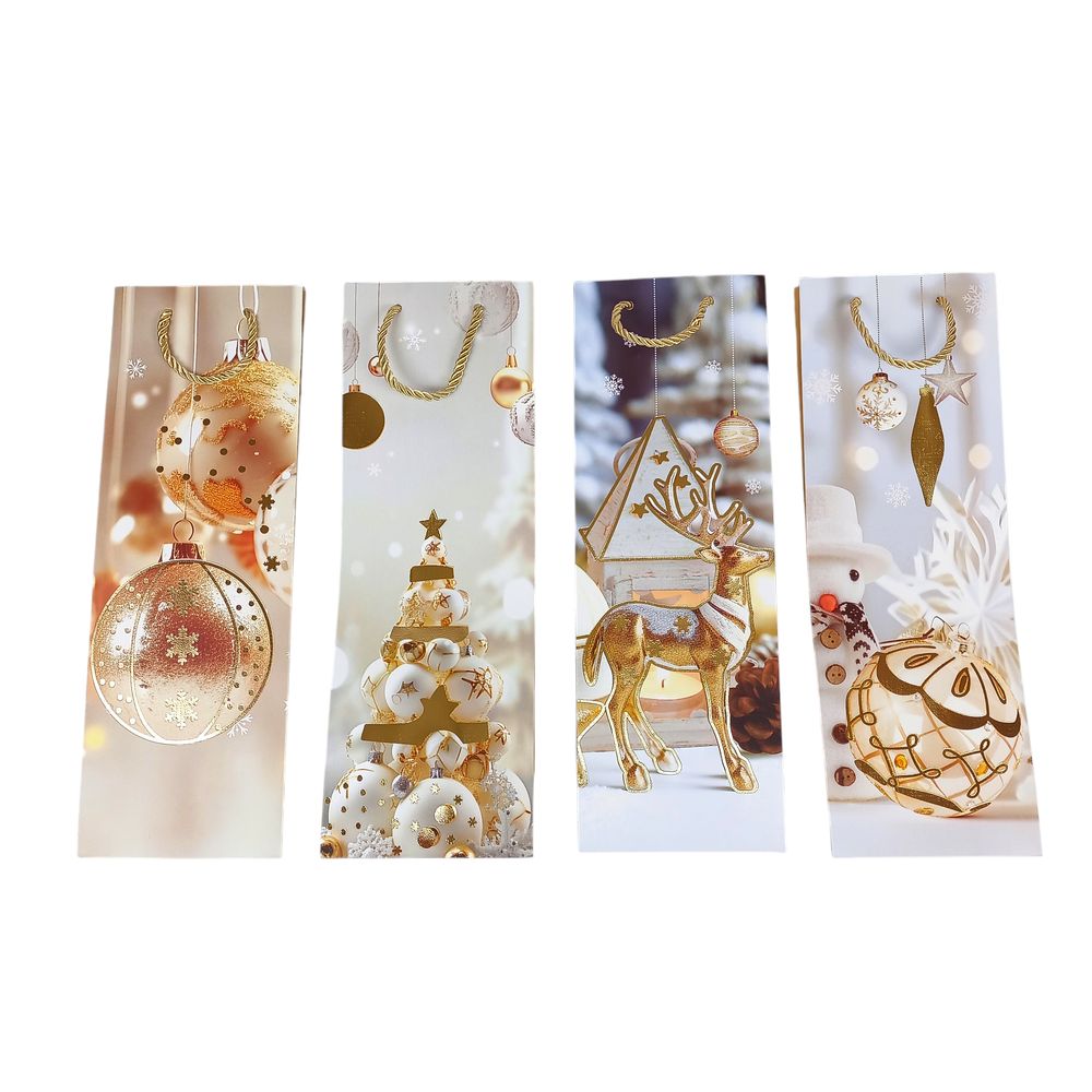 Пакет подарочный новогодний под бутылку, 4 дизайна, 210g, 35 х 12 х 9 см (2604)