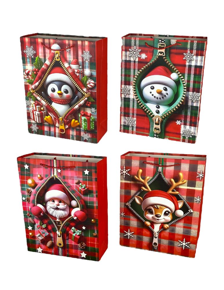 Пакет подарочный новогодний, 4 дизайна, 210g, 26 х 32 х 10 см (DV-BK-10302-2M)