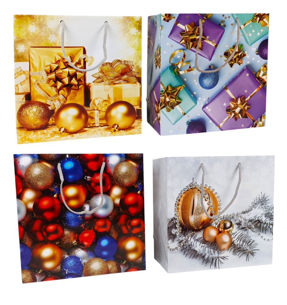 Новогодний ,картонные пакеты с ручками Гигант вертикальный 30х47х12-005 (12 шт)