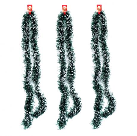 Новорічна мішура довжиною 2 метри та шириною 9 см — прикраса з ефектом інею, виконана в темно-зеленому кольорі з білими кінчиками. Завдяки густій структурі та легкому мерехтінню створює враження засніженої ялинки й чудово підходить для святкового оформлення. Мішура універсальна у використанні — нею можна декорувати ялинку, стіни, вікна, вітрини, арки чи святкові композиції. В упаковці 1 штука. Легка, не обсипається й придатна для багаторазового використання.