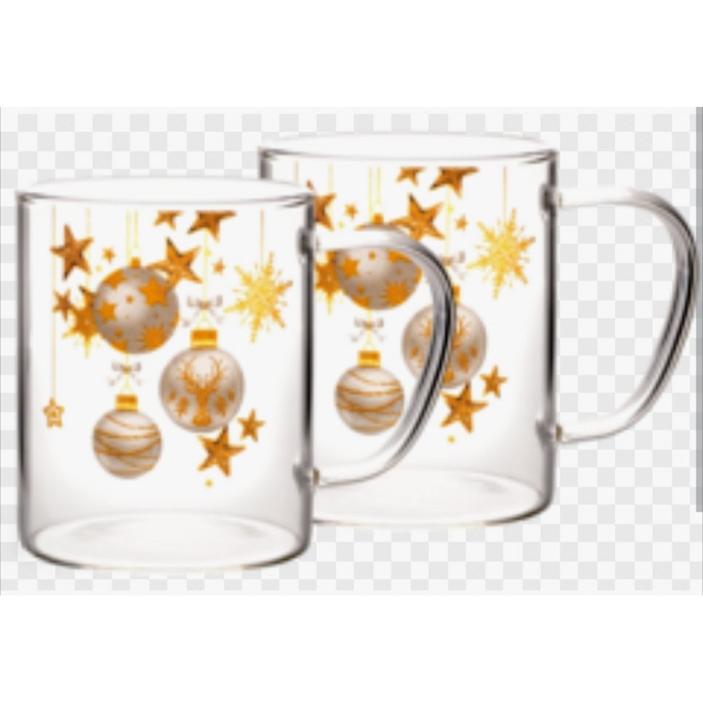 Чашка стеклянная из боросиликатного стекла (400мл) Новогодняя, ( в подарочной упаковке 2штуки)