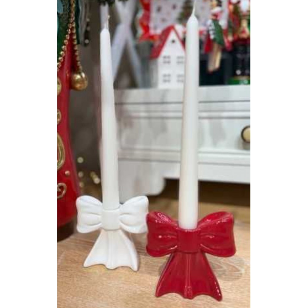 Керамические подсвечники в форме банта(белый и красный) (в подарочной уп)