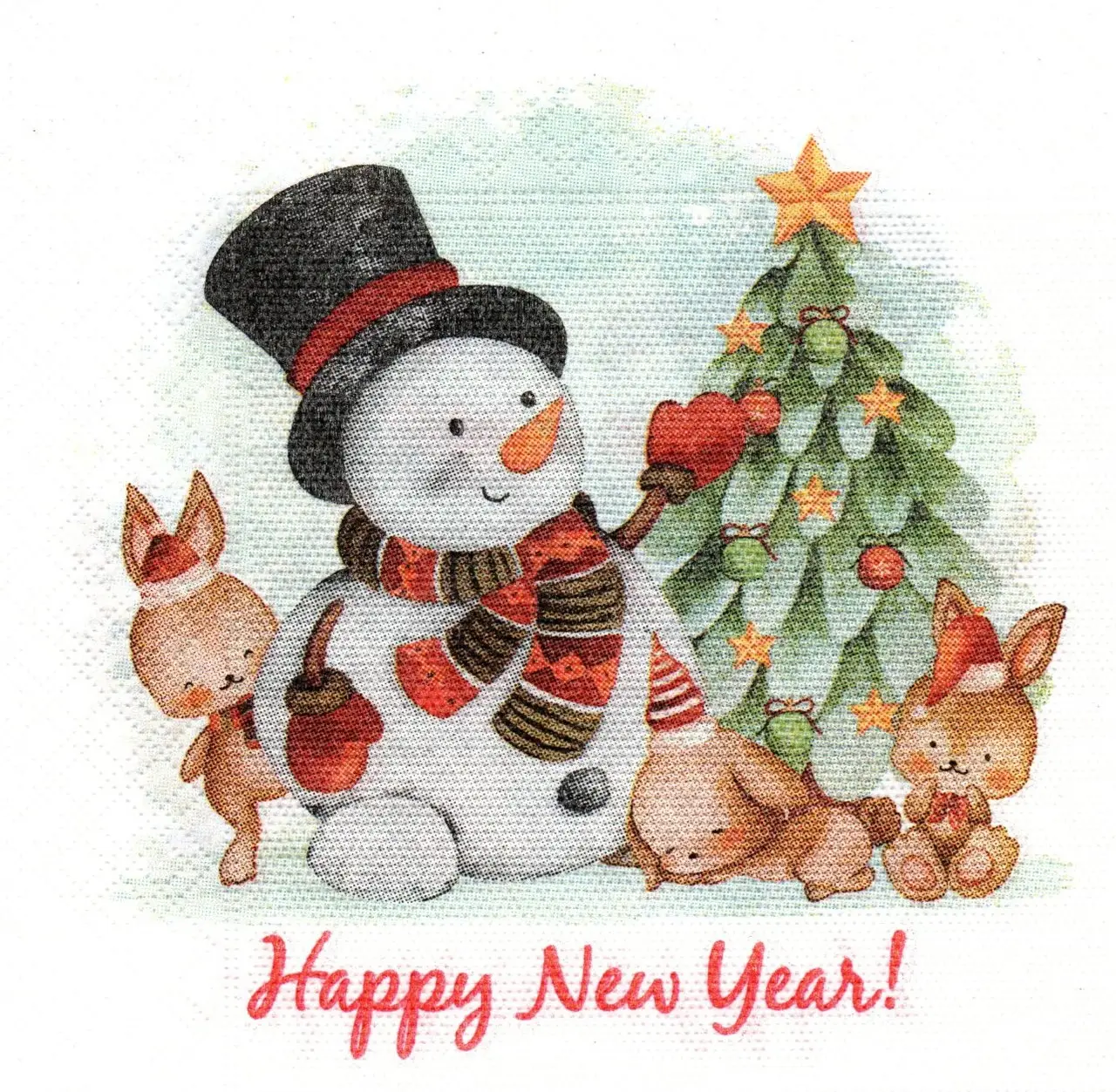 Праздничная салфетка (ЗЗхЗЗ, 20шт) LuxyНГ Снеговик праздничный (802) (1 пачка)