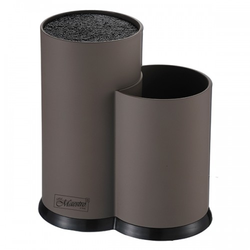 Двойная колода для ножей Maestro MR 1438А состоит из 2х частей: отделения с наполнителем для удобного хранения ножей и второго пустого отсека для прочих кухонных принадлежностей. Колода выпускается в двух цветовых вариантах: темно и светло-сером.