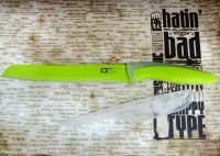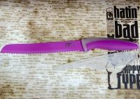 Материал клинка: высокоуглеродистая нержавеющая сталь с цветным антибактериальным покрытием. Материал рукояти: высококачественный пищевой пластик с цветными прорезиненными вставками.