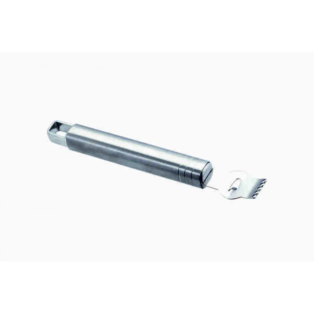 Прекрасно підходить для виготовлення декоративних стружок та спіралей із лимонної цедри. На кінці ручки є спеціальна петля, тому можна зберігати у вертикальному положенні.