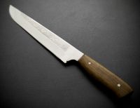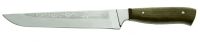 Изготовлен из высококачественной стали 40х13, которая проходит специальный цикл термообработки, позволяющей достичь твёрдости 55 единиц по Роквеллу (общеевропейский стандарт JSO) без потери гибкости. Эта сталь устойчива к корозии и хорошо держит заточку. Притын (накладка у основания лезвия) повышает комфортность и безопасность работы.