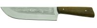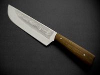 Изготовлен из высококачественной стали 40х13, которая проходит специальный цикл термообработки, позволяющей достичь твёрдости 55 единиц по Роквеллу (общеевропейский стандарт JSO) без потери гибкости. Эта сталь устойчива к корозии и хорошо держит заточку. Притын (накладка у основания лезвия) повышает комфортность и безопасность работы.