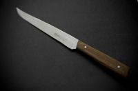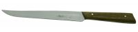 Изготовлен из высококачественной стали 40х13, которая проходит специальный цикл термообработки, позволяющей достичь твёрдости 55 единиц по Роквеллу (общеевропейский стандарт JSO) без потери гибкости. Эта сталь устойчива к корозии и хорошо держит заточку. Притын (накладка у основания лезвия) повышает комфортность и безопасность работы.